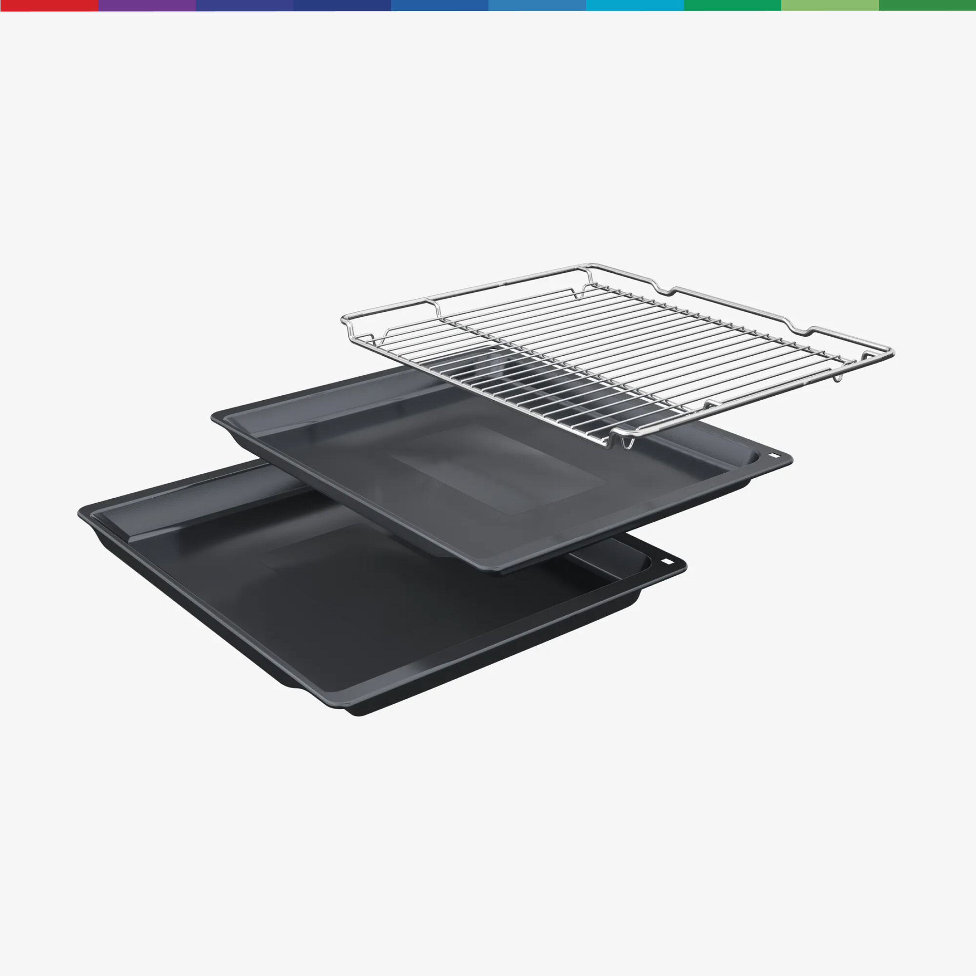 | Подробная комплектация | Духовой шкаф, кабель подключения, документация, эмалированный противень для выпечки, комбинированная решетка, универсальный противень |