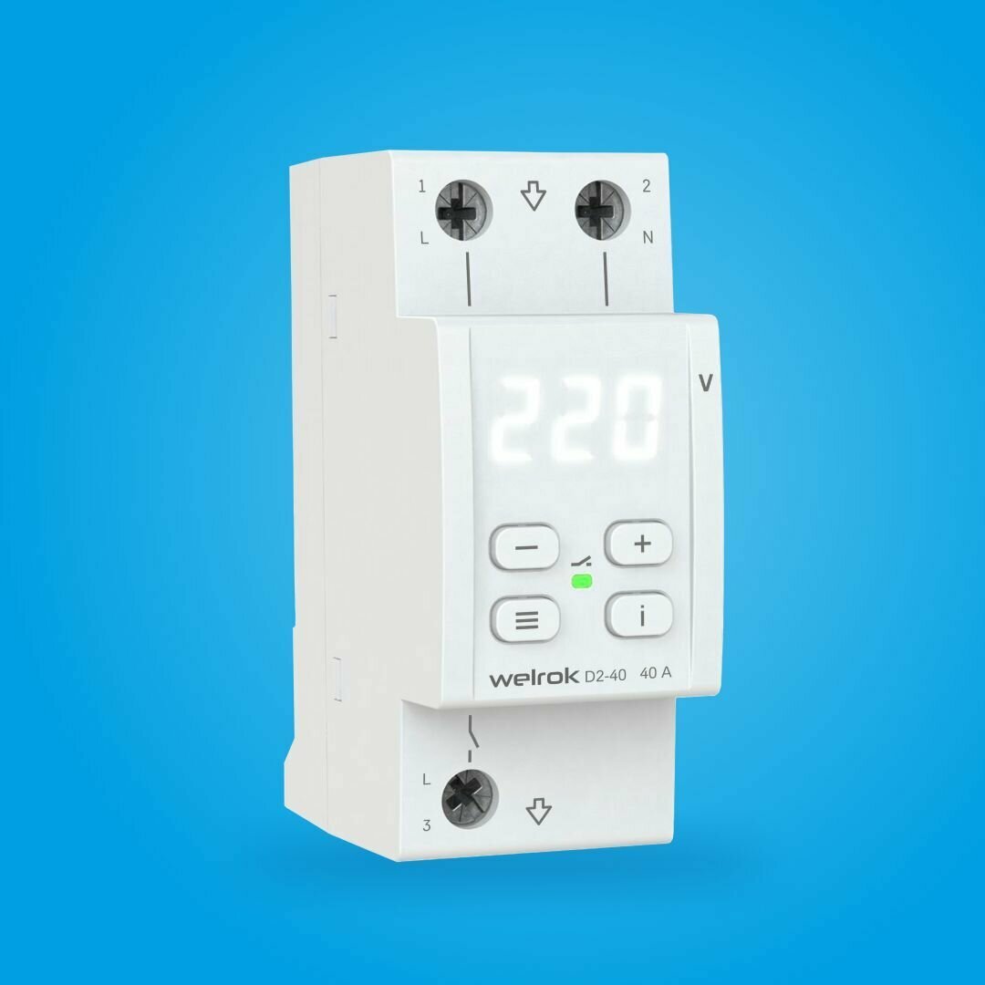 Купить Реле контроля напряжения Welrok D2-40, однофазное, 40А, два модуля, термозащита, белая индикация