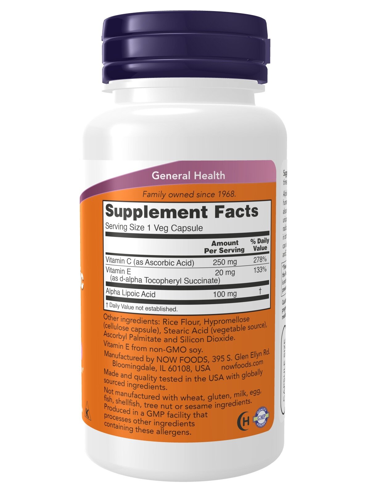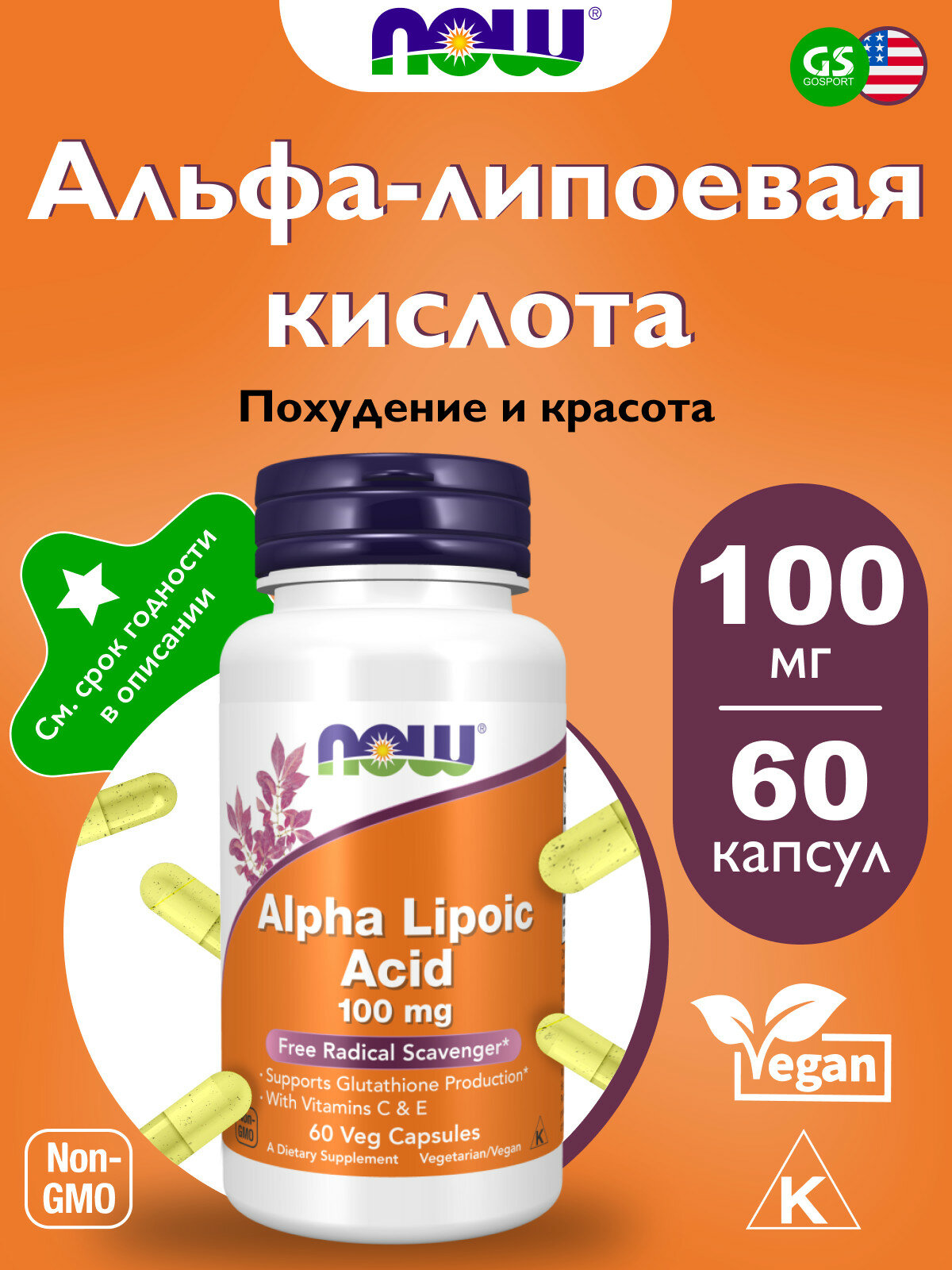 NOW Foods Alpha Lipoic Acid 100 мг vitamin C and E 60 капсул