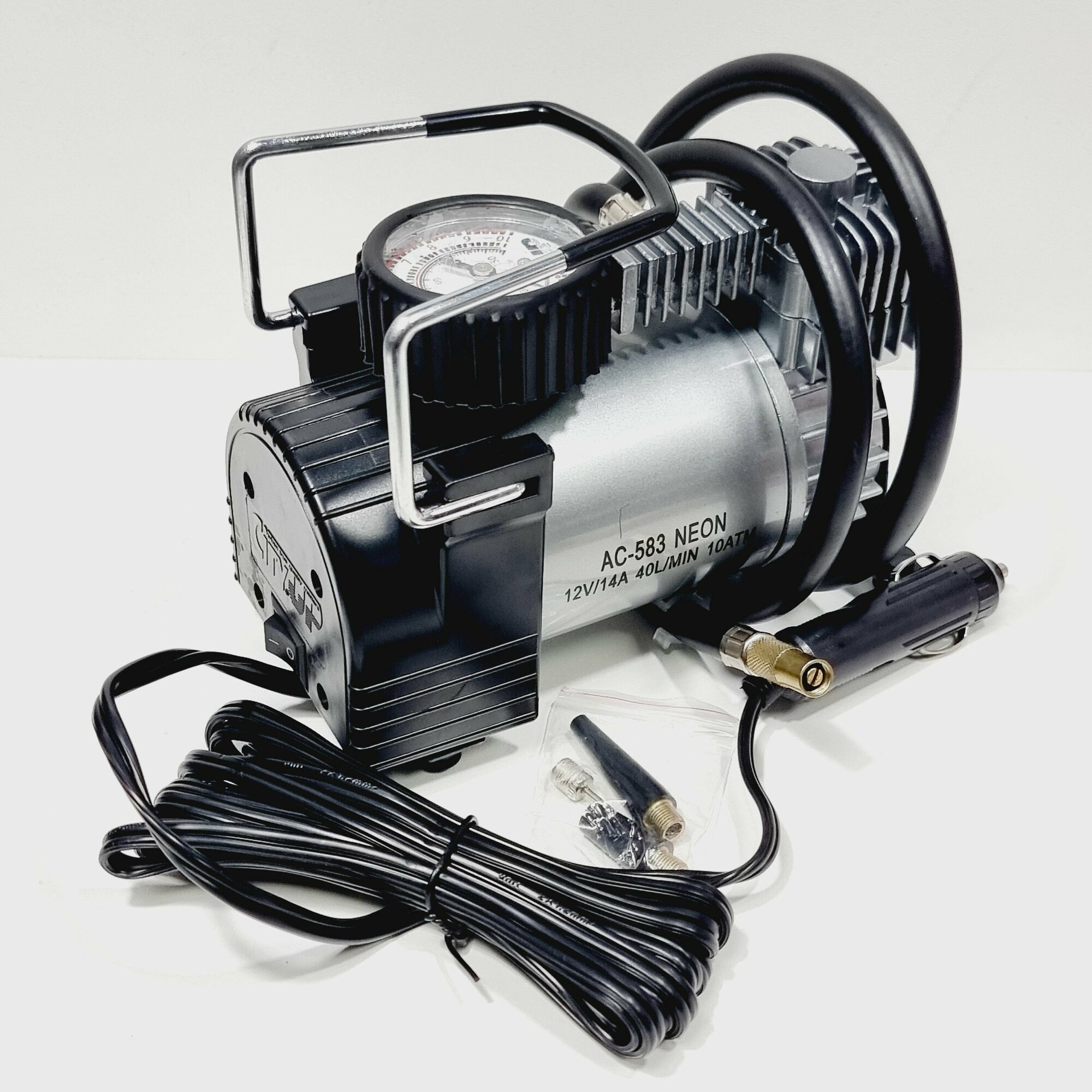 Компрессор автомобильный с подсветкой манометра Neon CityUP-583 / 35л.м, 0.8м шланг, 2.7м кабель, 170w