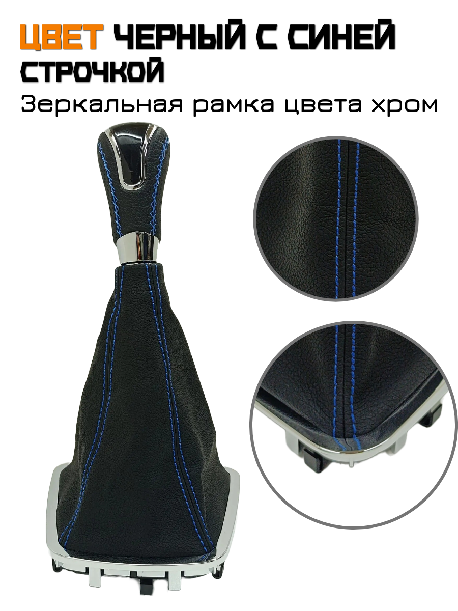 Ручка КПП с чехлом в стиле Весты на Лада Гранта Lada Granta, Лада Калина-2 Lada Kalina-2, Дацун Datsun (вставки "хром", синяя строчка)