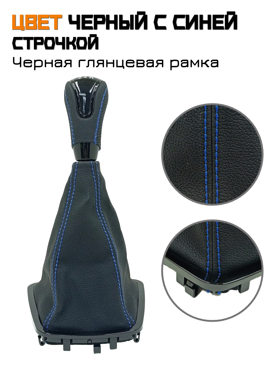 Купить Ручка КПП с чехлом в стиле Весты на Лада Гранта, Лада Калина-2, Дацун, рамка черный лак, черный с синей строчкой