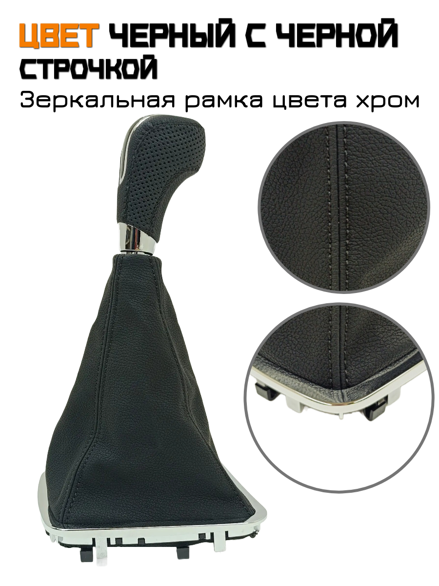 Купить Ручка КПП с чехлом в стиле Весты на Лада Гранта, Лада Калина-2, Дацун, рамка хром, черный с черной строчкой