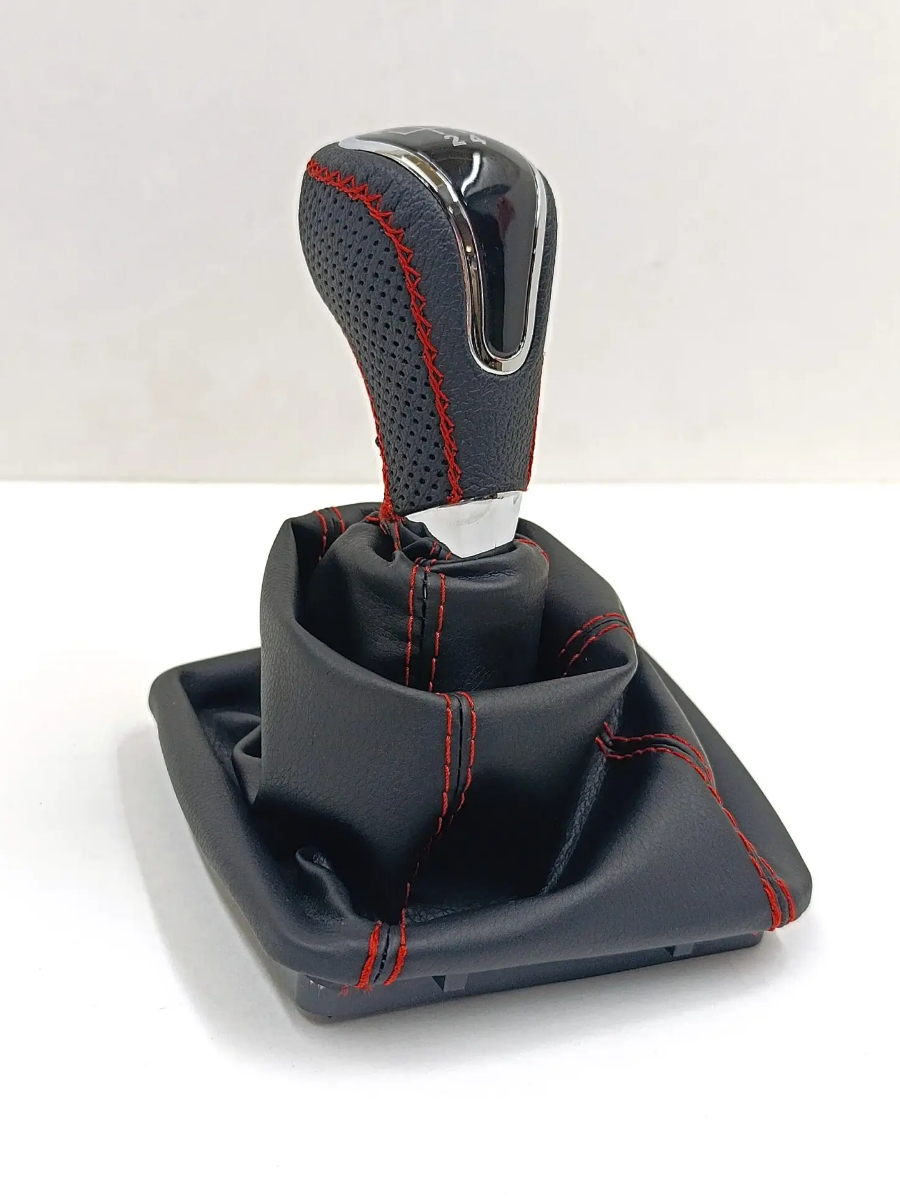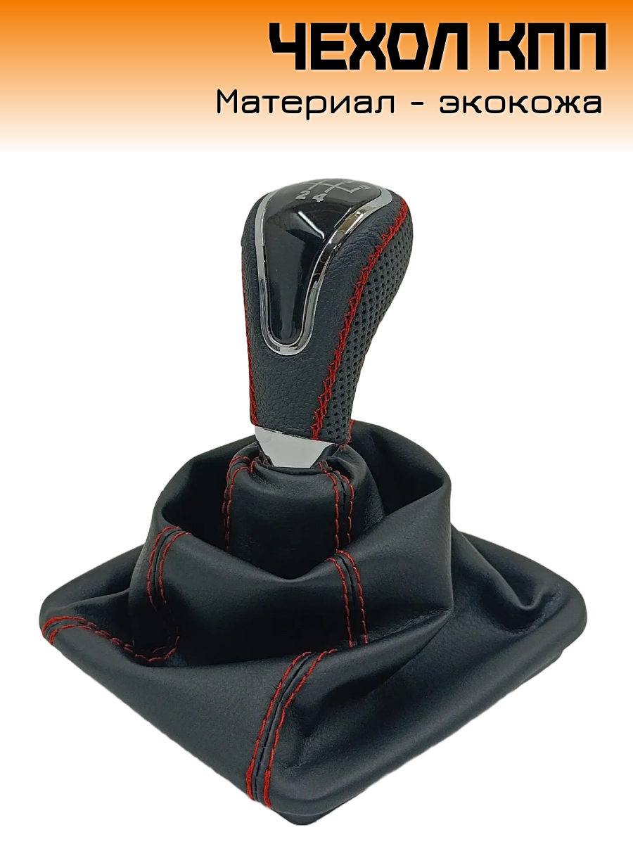 Ручка КПП с чехлом в стиле Весты на ВАЗ-2170 Лада Приора 1 с ВАЗ-2110 кулисой, черный с красной строчкой "рамка хром"