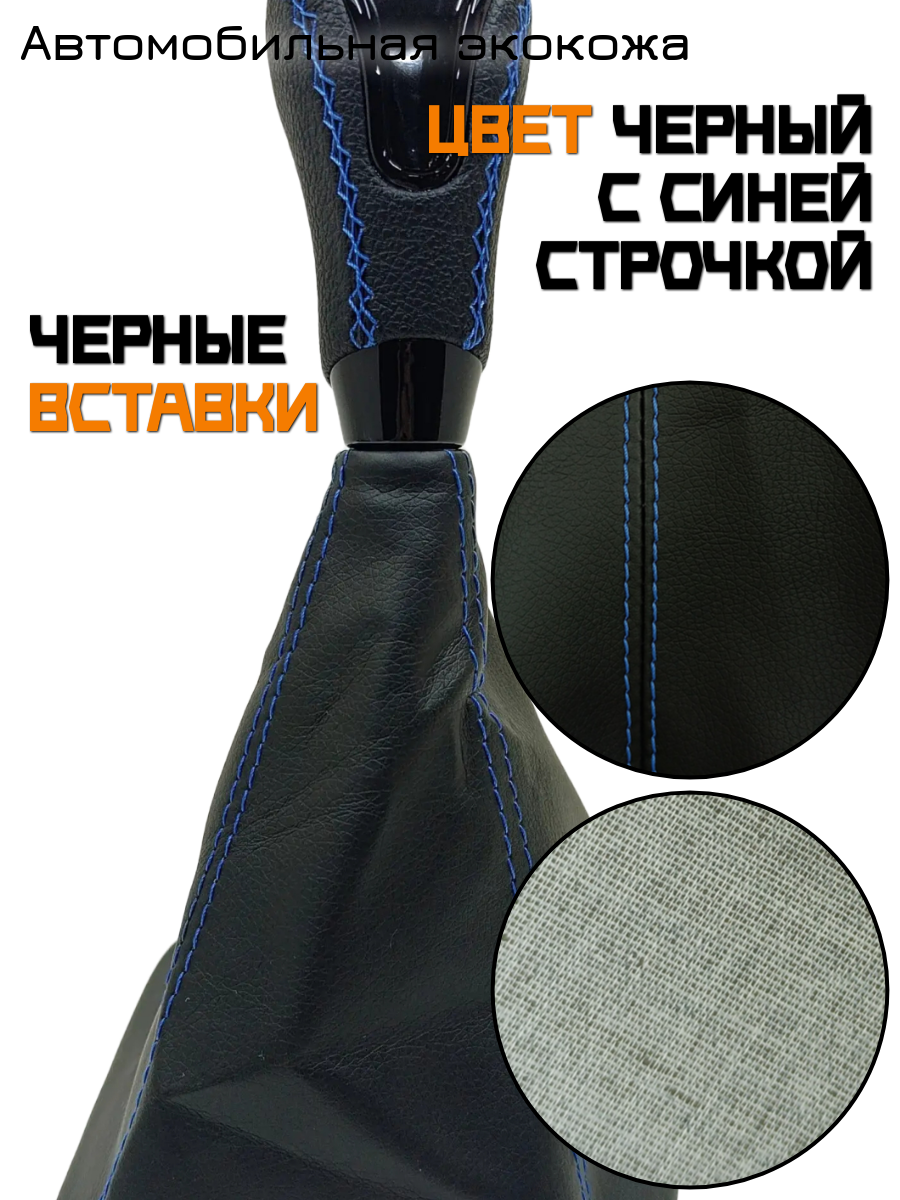 Ручка КПП с чехлом в стиле Весты на ВАЗ-2170 Лада Приора 1 с ВАЗ-2110 кулисой, черный с синей строчкой "рамка лак"