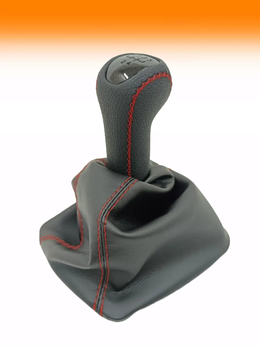 Ручка КПП на ВАЗ-2170, Лада Приора 1 (LADA Priora 1) c ВАЗ-2110 кулисой, люкс-черная вставка, ручка коробки переключения передач, черный с красной строчкой