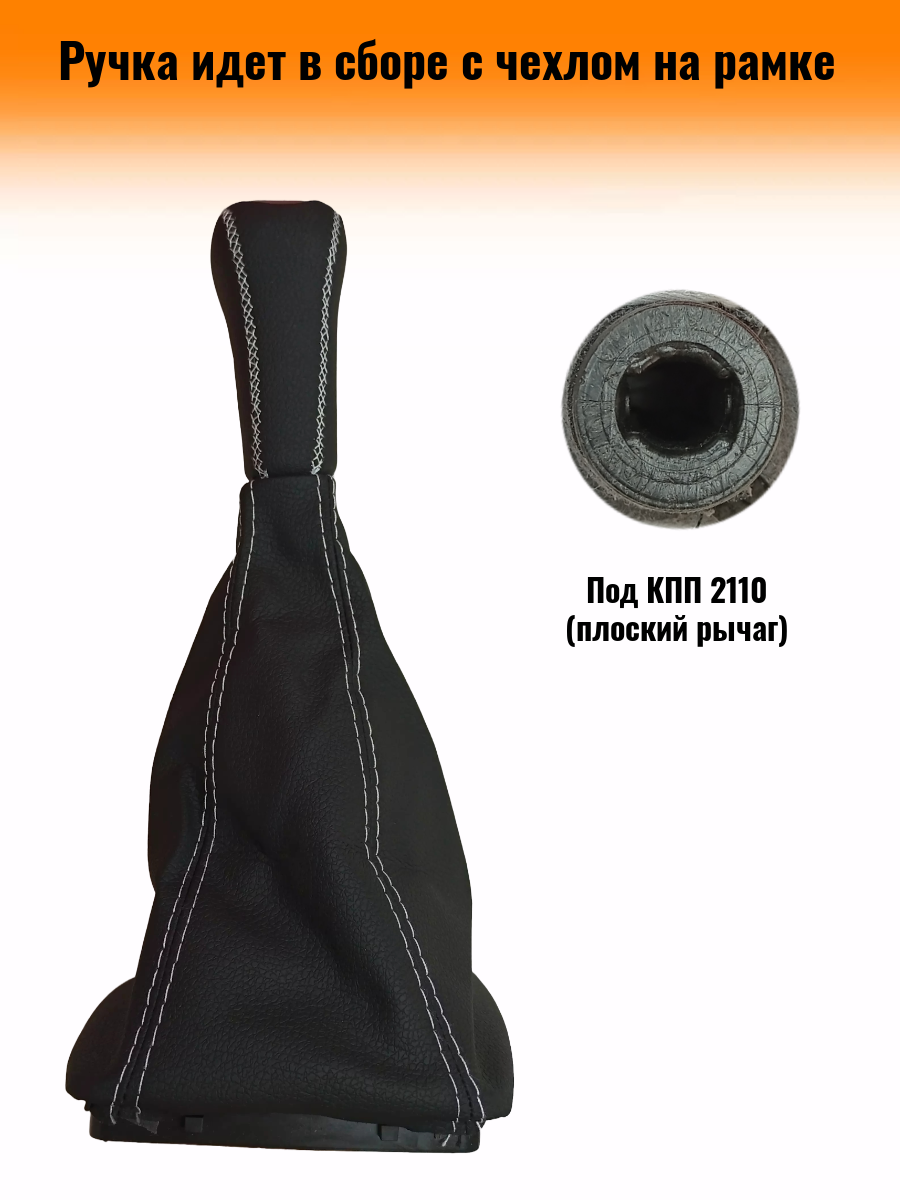 Ручка КПП на ВАЗ-2170, Лада Приора 1 (LADA Priora 1) c ВАЗ-2110 кулисой, ЛЮКС-черная вставка, черный с белой строчкой