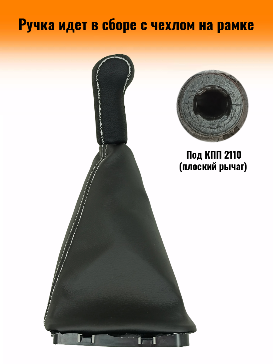 СохранитьРучка КПП на ВАЗ-2170, Лада Приора 1 (LADA Priora 1) c ВАЗ-2110 кулисой, ЛЮКС-черная вставка, черный с белой строчкой интересное: