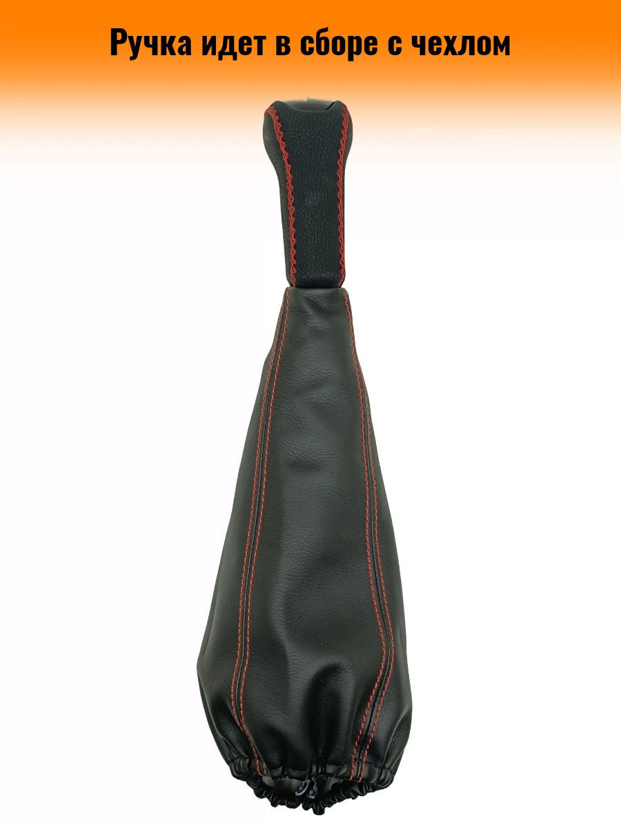 Ручка КПП с чехлом пыльником на классику: ВАЗ-2101-2107,"люкс-черный",черный с красной строчкой