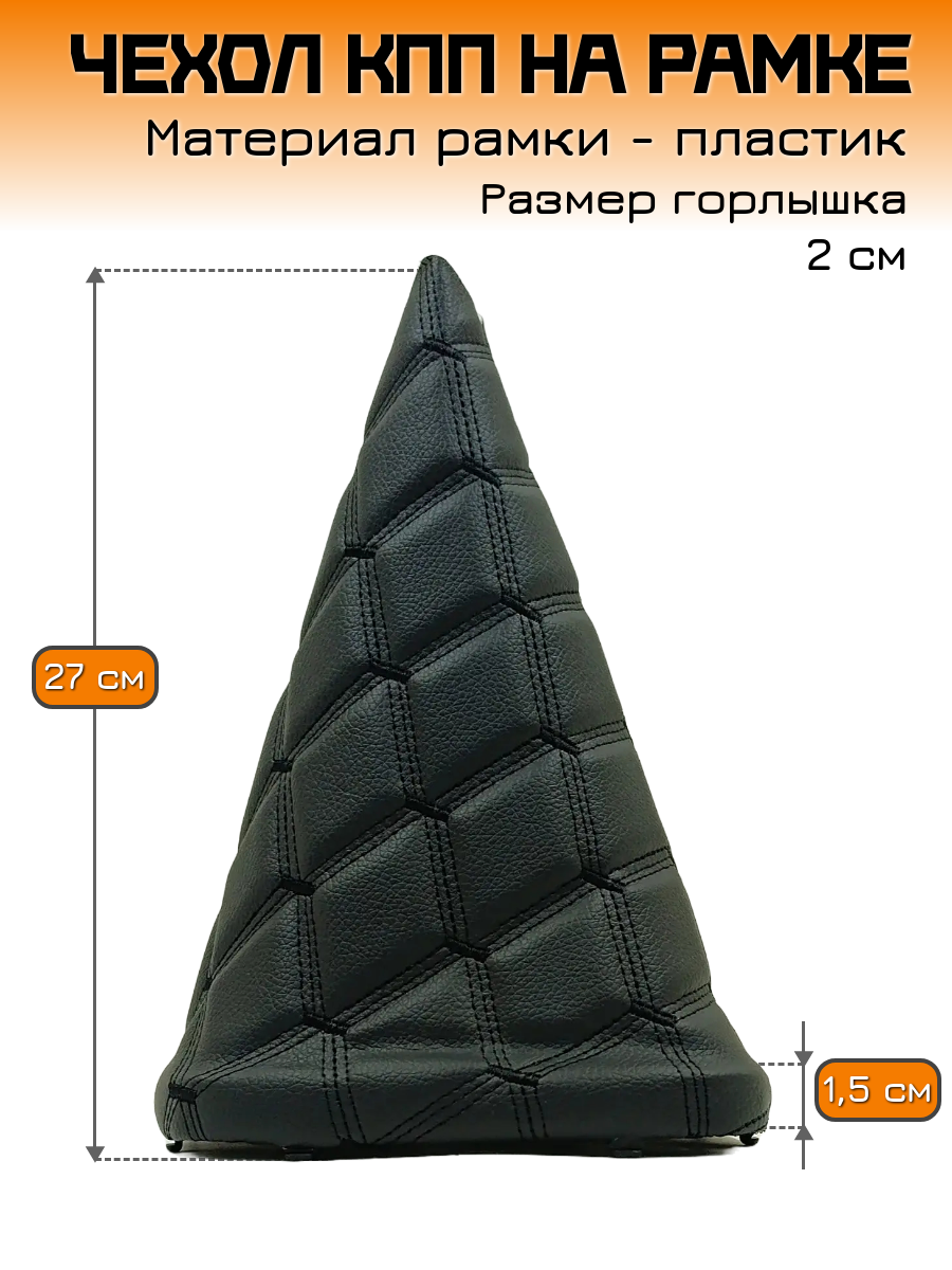Чехол КПП на ВАЗ-2110, ВАЗ-2111, ВАЗ-2112 (Lada, Лада) - черный с оранжевой строчкой "ромб-бабочка"