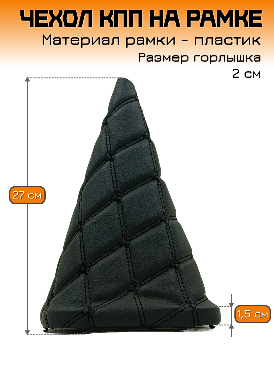 Чехол КПП на ВАЗ-2110, ВАЗ-2111, ВАЗ-2112 (Lada, Лада) - черный с тройной черной строчкой "ромб"