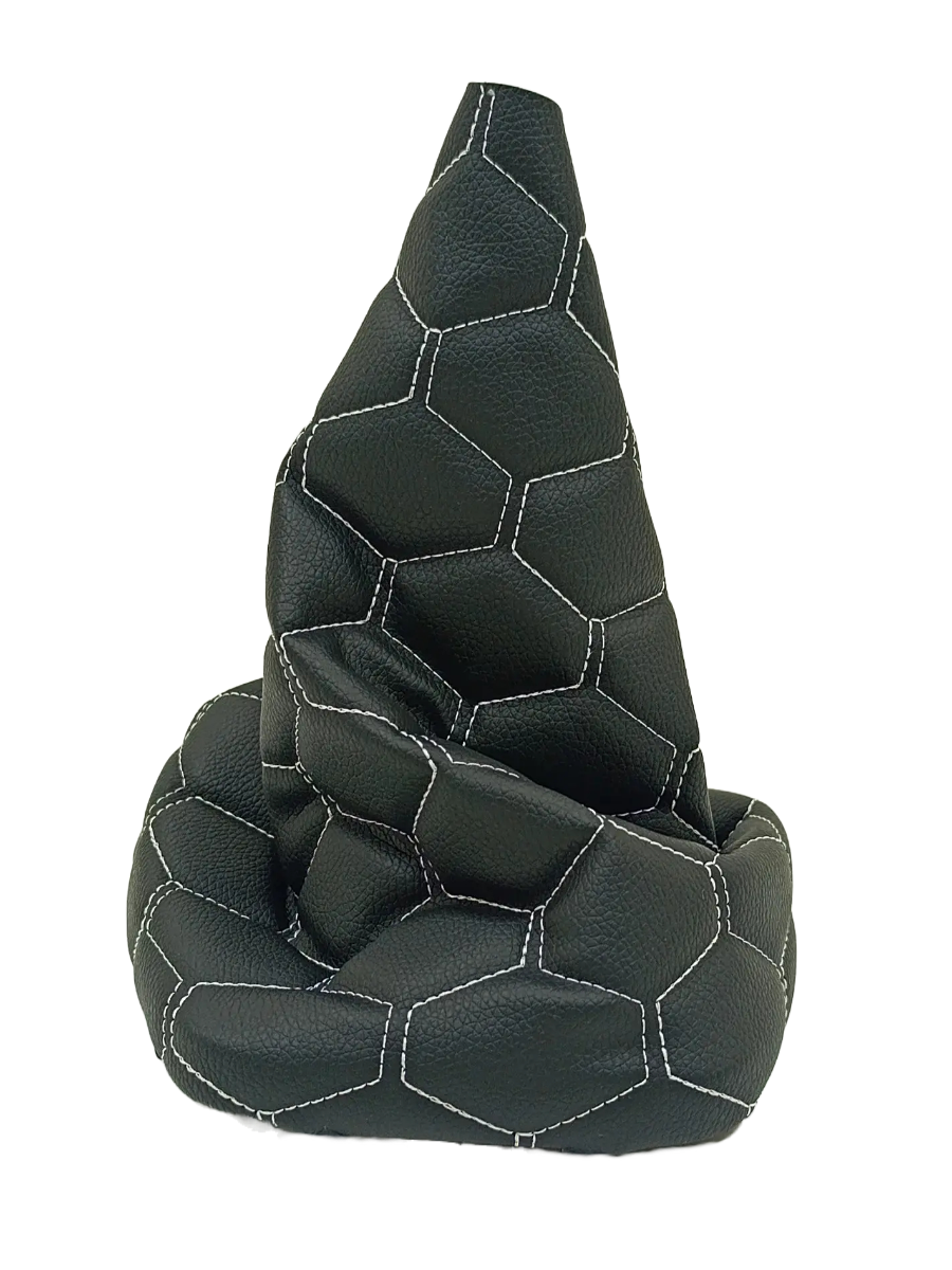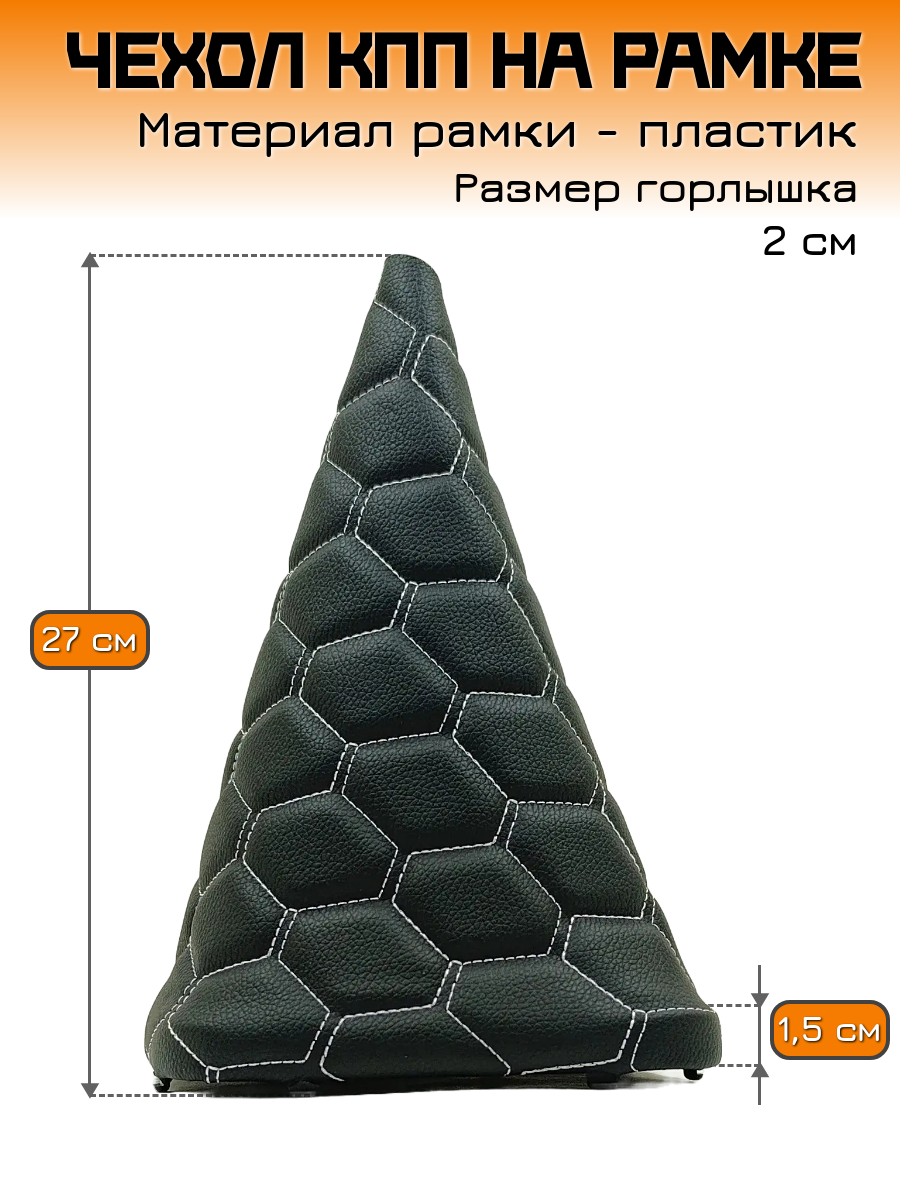 Купить Чехол коробки переключения передач (КПП) на ВАЗ-2110, ВАЗ-2111, ВАЗ-2112 (Lada, Лада) - черный с белой строчкой "соты"