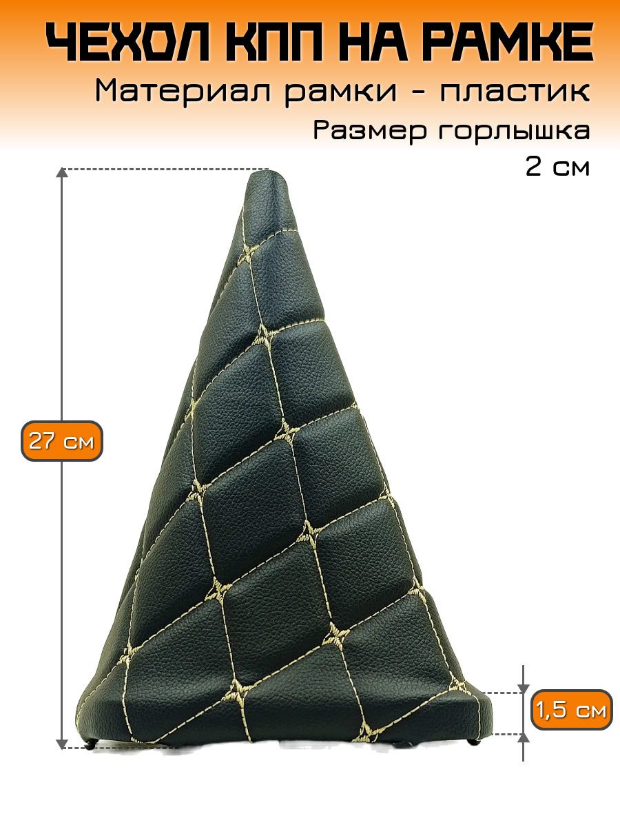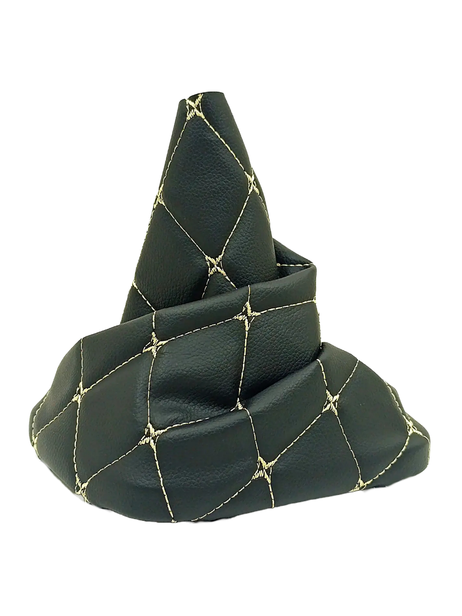 Купить Чехол КПП на ВАЗ-2110, ВАЗ-2111, ВАЗ-2112 (Lada, Лада) - черный с бежевой строчкой "ромб-бабочка"