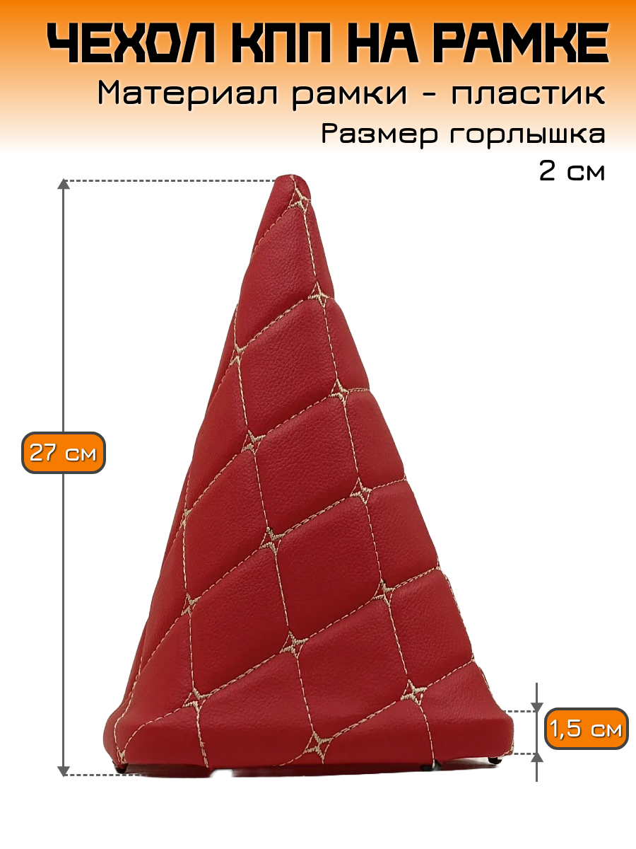 Купить Чехол КПП на ВАЗ-2110, ВАЗ-2111, ВАЗ-2112 (Lada, Лада) - красный с бежевой строчкой "ромб-бабочка"