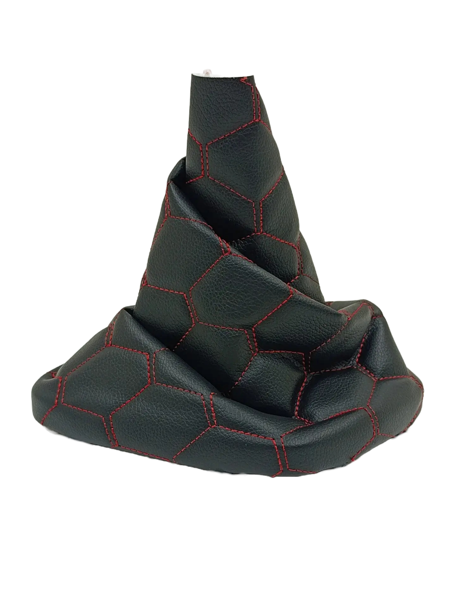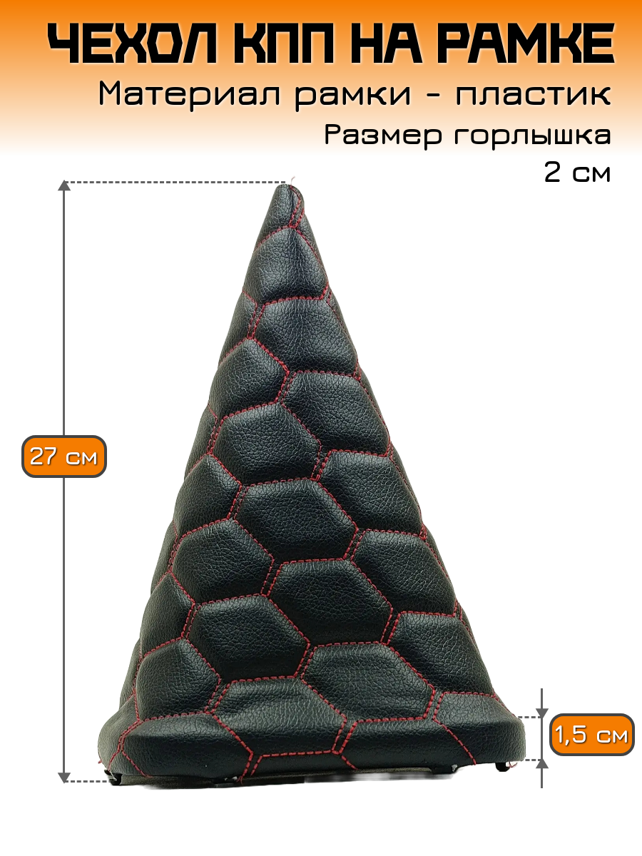 Купить Чехол коробки переключения передач (КПП) на ВАЗ-2110, ВАЗ-2111, ВАЗ-2112 (Lada, Лада) - черный с красной строчкой "соты"