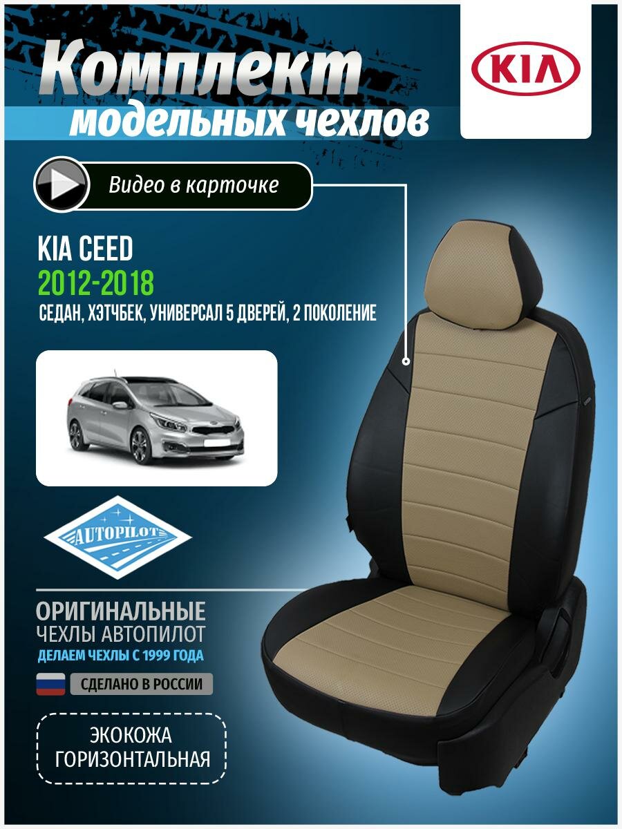 Чехлы для KIA Ceed 2 2012-2018 Автопилот Темно-Бежевый Экокожа ki-si-kcii-chetb-e