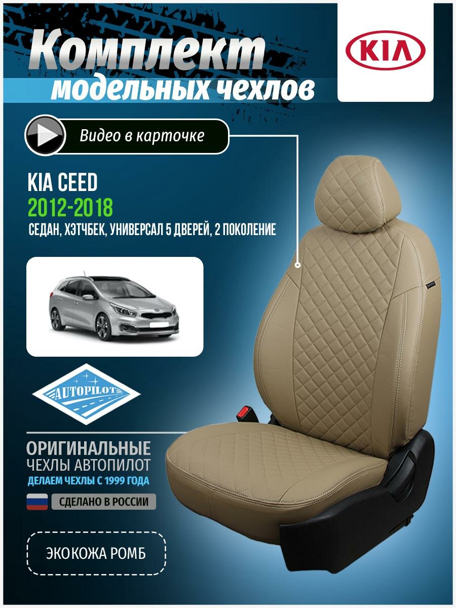 Чехлы на сиденья "АВТОПИЛОТ" из экокожи для KIA Ceed II с 12-18г. Бежевый, Бежевый. ki-si-kcii-bebe-e