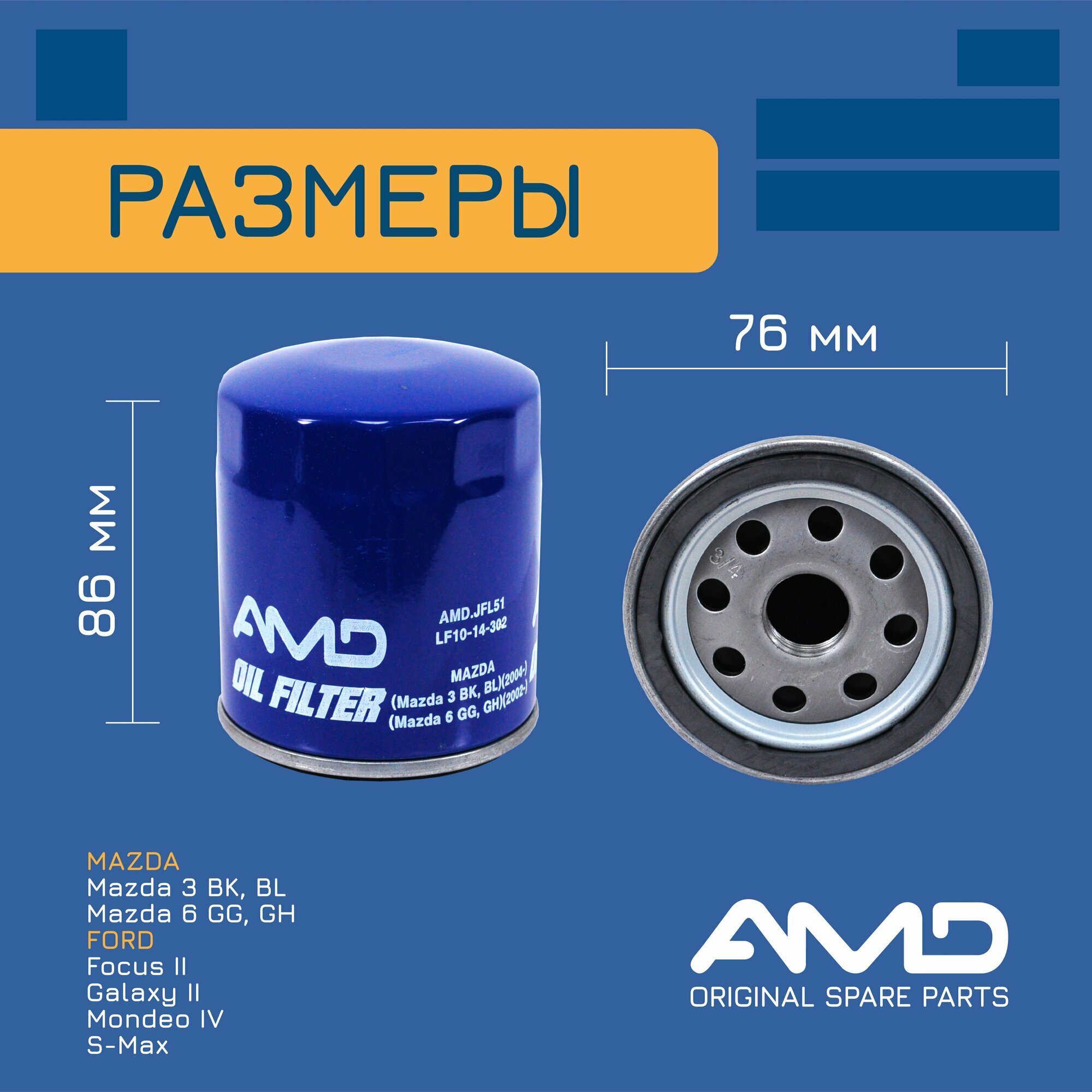 Фильтр масляный LF1014302 AMD.JFL51 для MAZDA Mazda 3 BK, BL 2004- Mazda 6 GG, GH 2002-