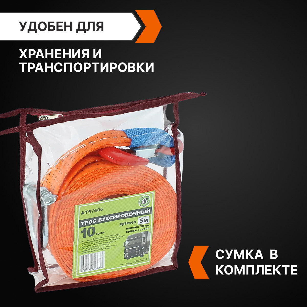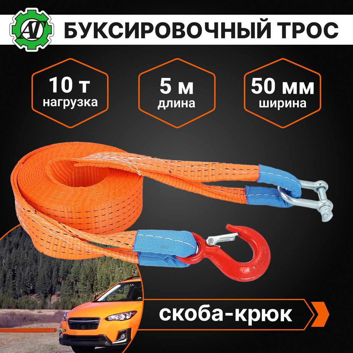 Трос буксировочный 10т, длина 5м, ширина 50мм (скоба-крюк) интересное: