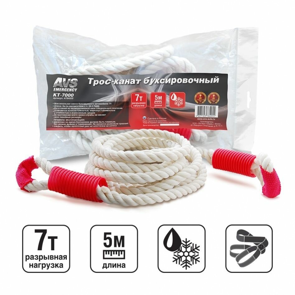 A78405S Трос-канат буксировочный без крюков AVS KT-7000 7т 5м, в пакете интересное: