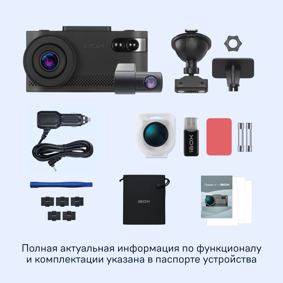 | Дополнительная информация | Комплектация:Комбо-устройство, Карта памяти на 16Гб, Адаптер питания iBOX Power Cord USB C2 4м, Кабель micro USB-USB, Поворотное магнитное крепление на присоске с активным питанием и подключением камеры заднего вида, CPL-фильтр, Инсталляционный комплект, Предохранители, Элемент крепления на 3М скотче, запасной 3М скотч, Адаптер для карты памяти micro SD, Чехол |