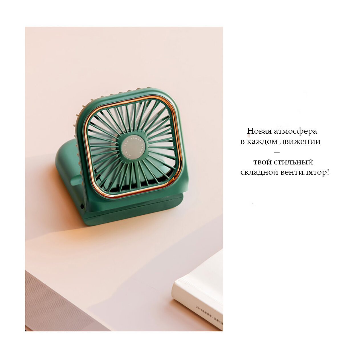 Портативный складной USB-вентилятор с цифровым дисплеем, 5 скоростей, время работы 7-12 часов, подставка для телефона / зеленый
