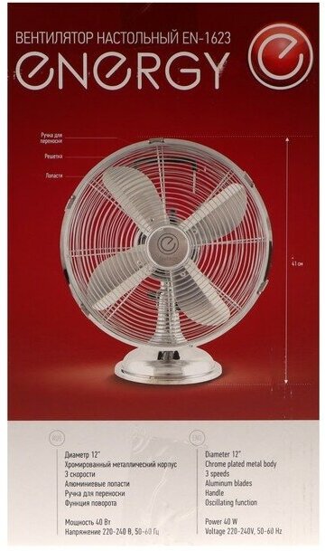 Вентилятор Energy ELEGANCE EN-1623 настольный металлический хромированный корпус
