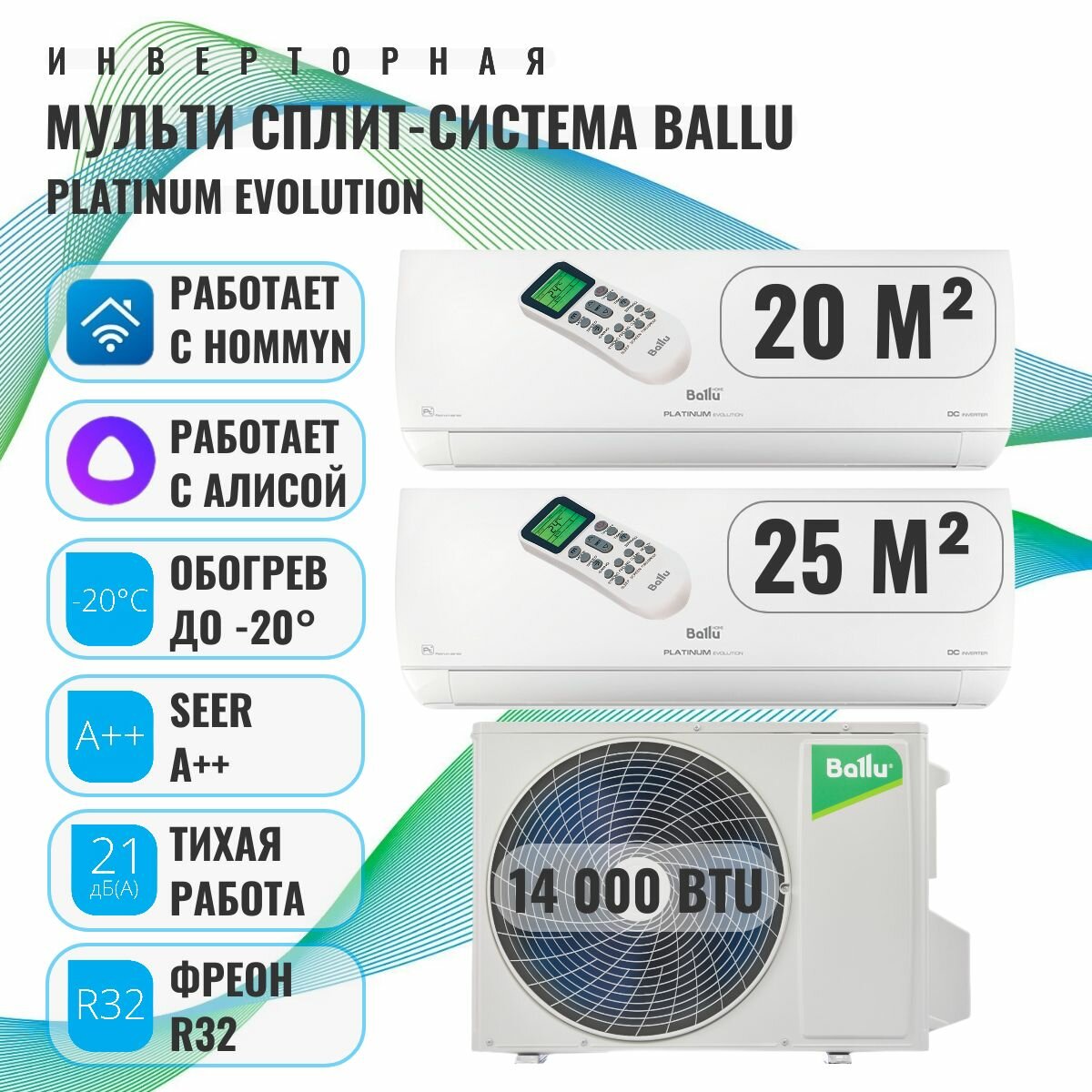 Инверторная мульти сплит-система Ballu Platinum Evolution на 2 комнаты BSUI-FM/in-07+09 HN8/EU BA2OI-FM/out-14HN8/EU