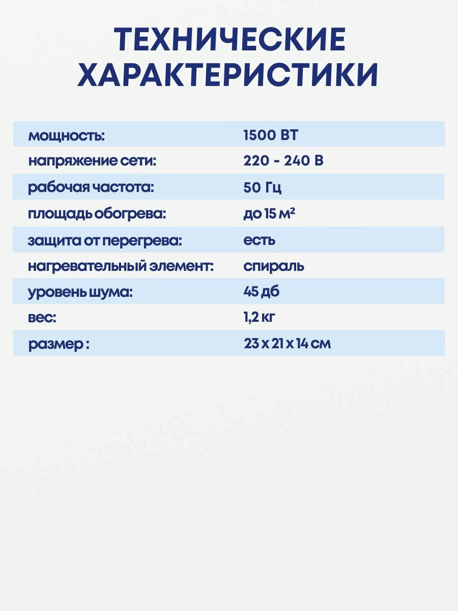 | Подробная комплектация | Тепловентилятор ENGY PTC-321 1500Вт 3 режима белый |