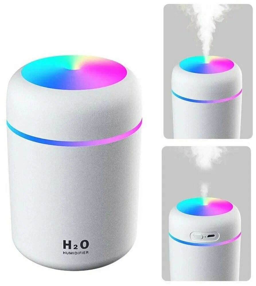 Увлажнитель воздуха, портативный увлажнитель с LED подсветкой, Аромадиффузор, белый