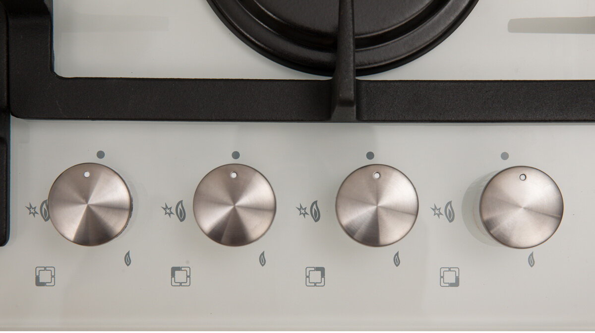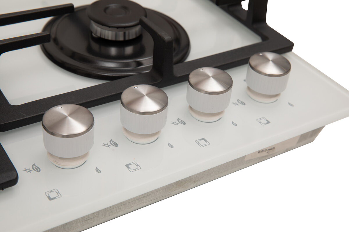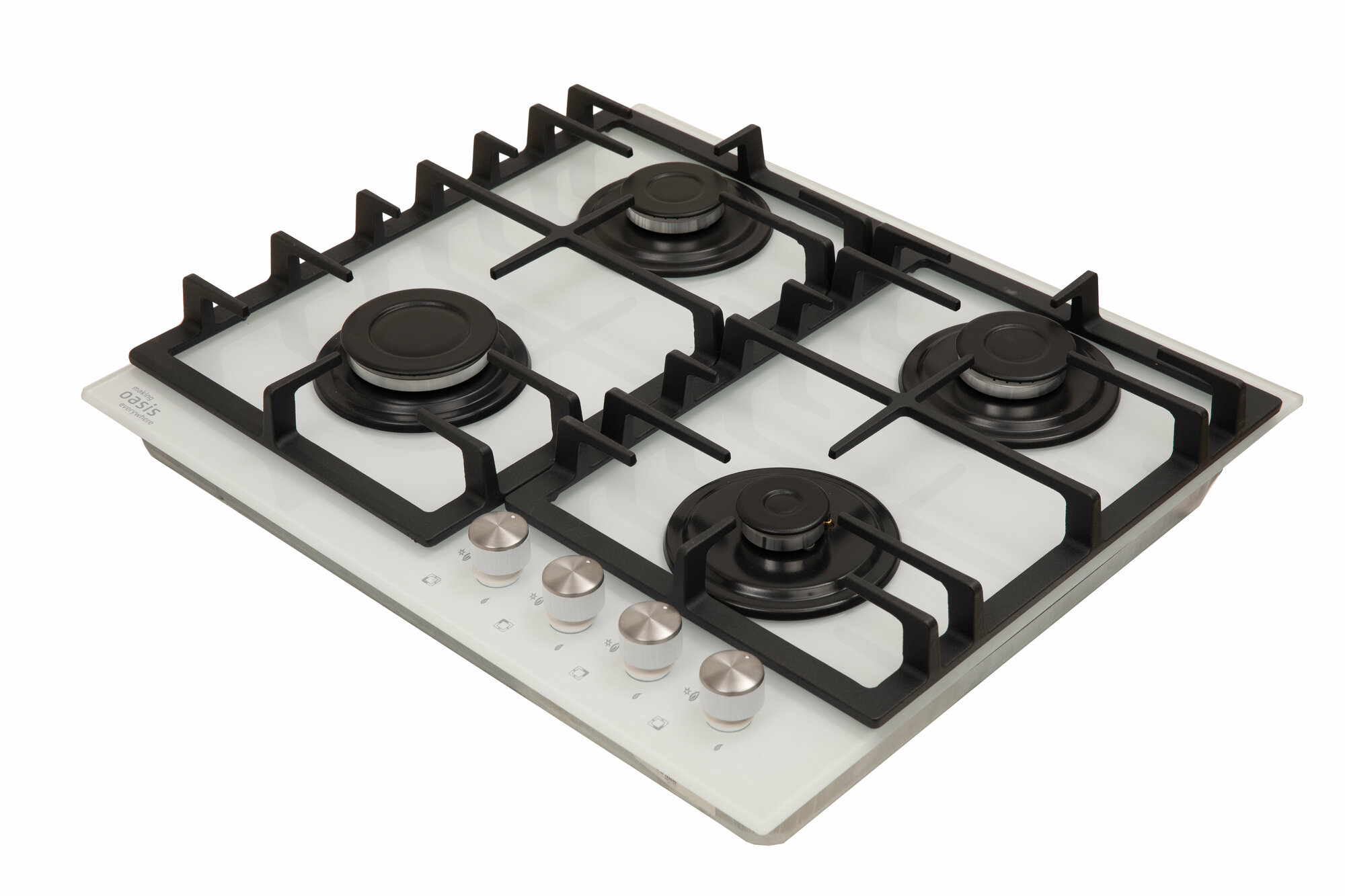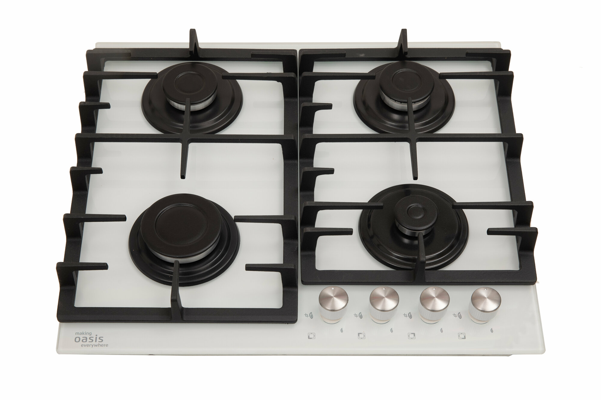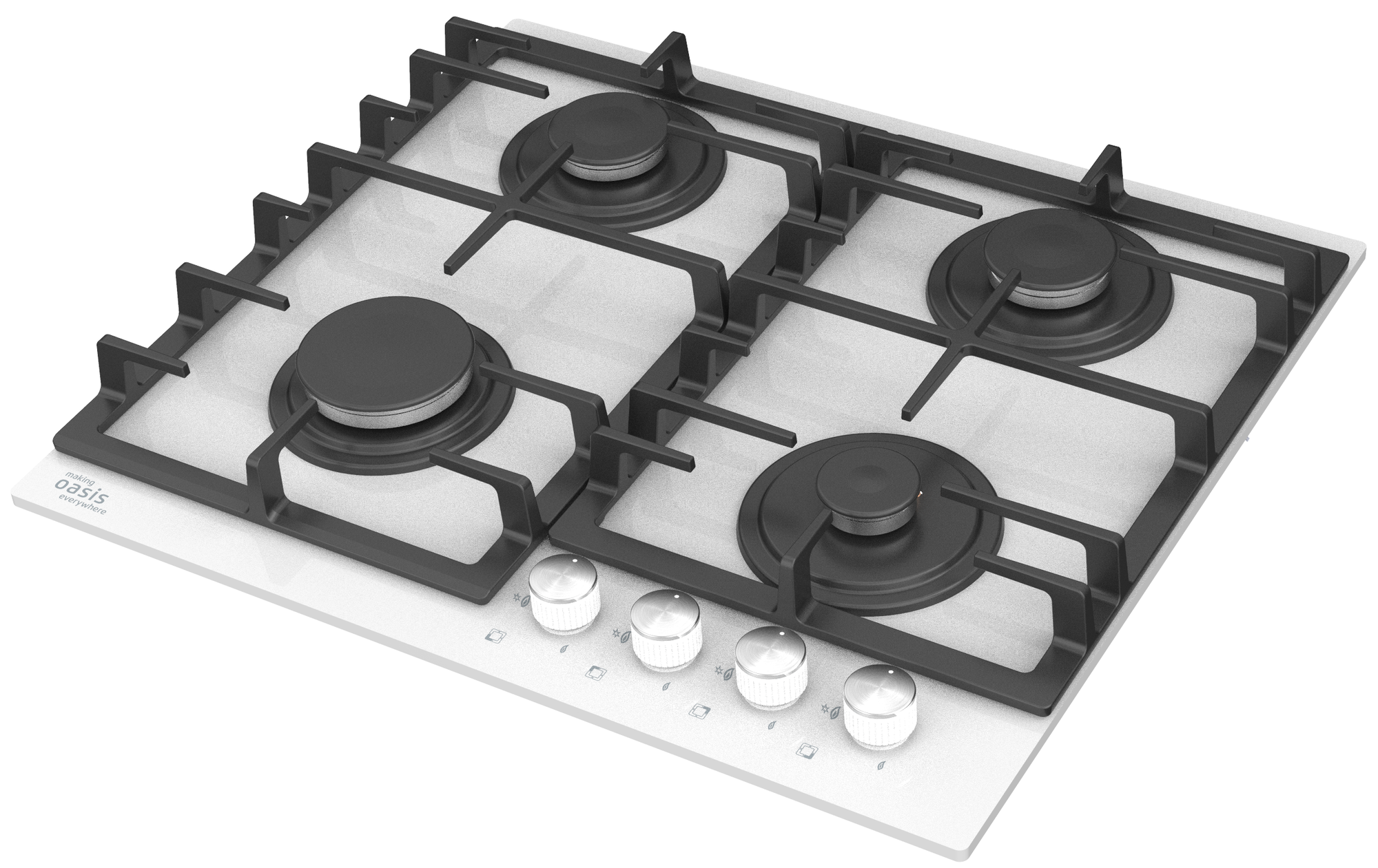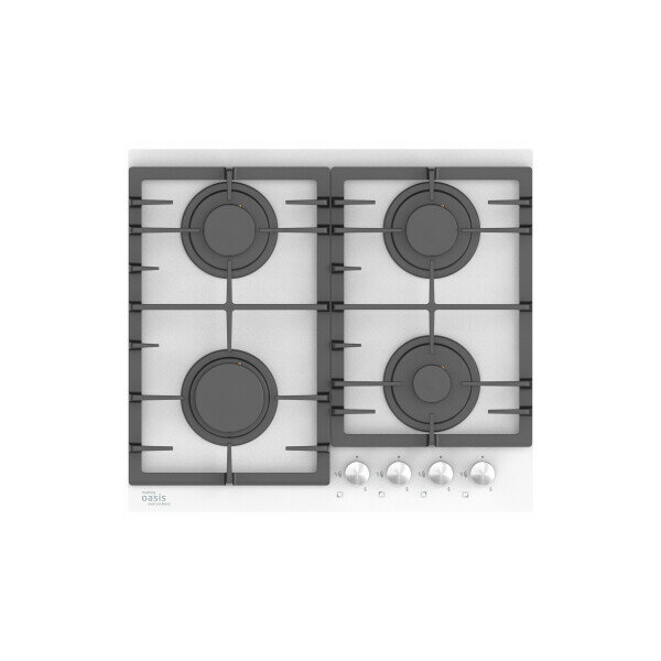 Купить Варочная панель встраиваемая Oasis P-GWR, 4 газовые горелки, чугунные решётки, закалённое стекло, цвет белый