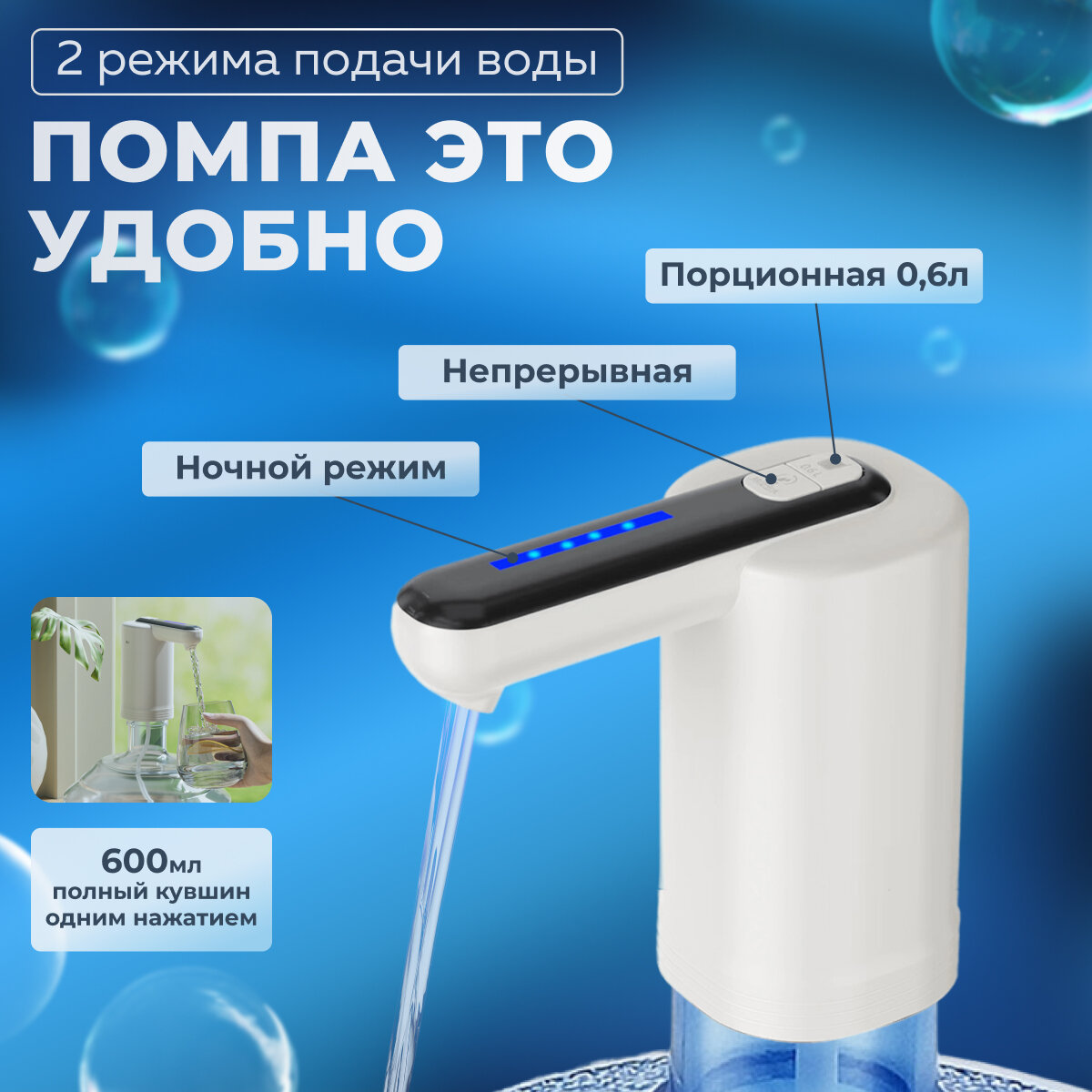 СохранитьПомпа для воды электрическая на бутыль 19л с двойным насосом молочно-белая AquANDLike интересное: