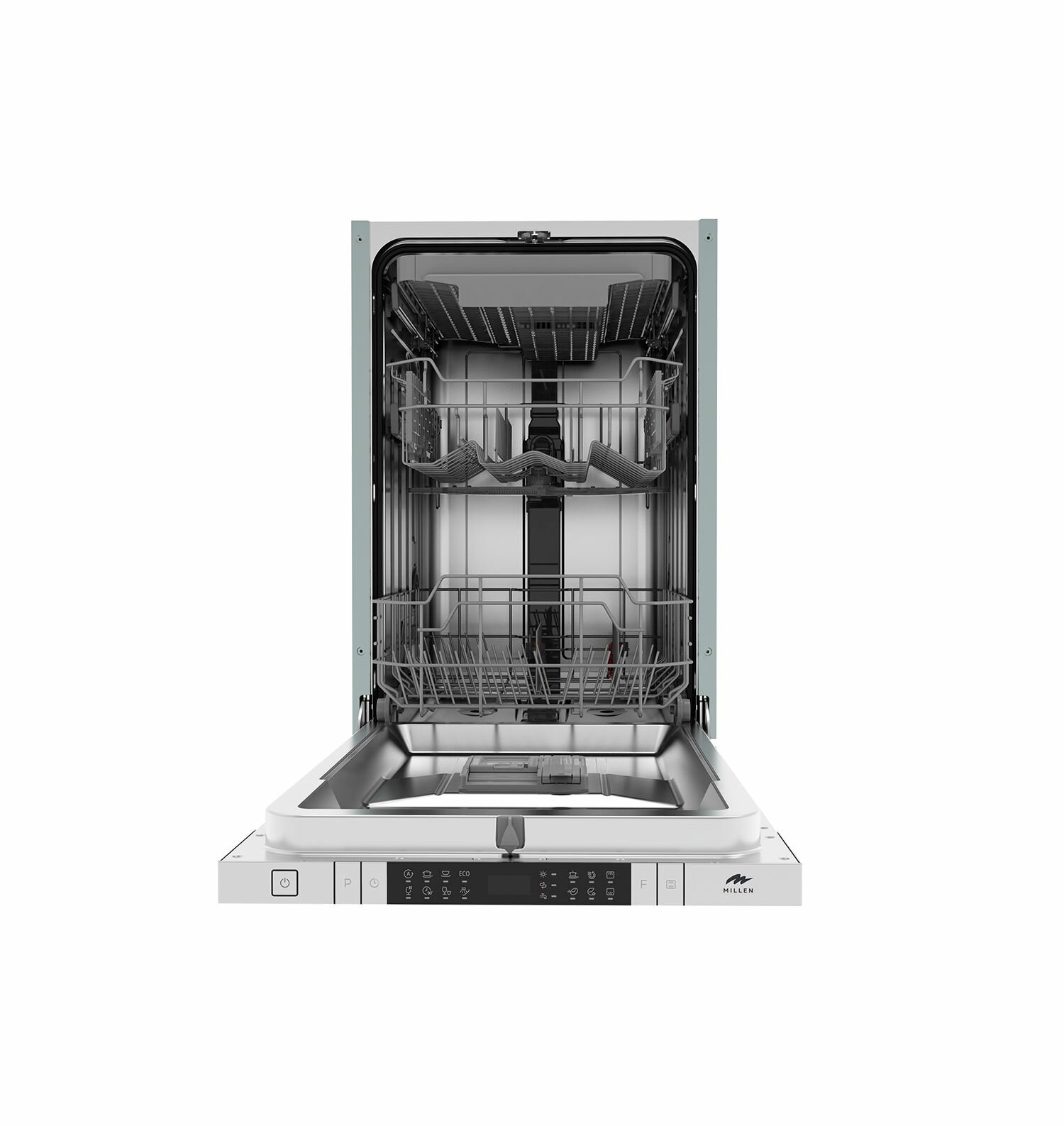 Встраиваемая посудомоечная машина MILLEN MDW 451, Управление Электронное, ширина 45 см, 3 лотка, 10 комплектов, Express, Интенсивная мойка, Экстрасушка, Энергосберегающая мойка, Отложенный старт 24ч,AquaStop