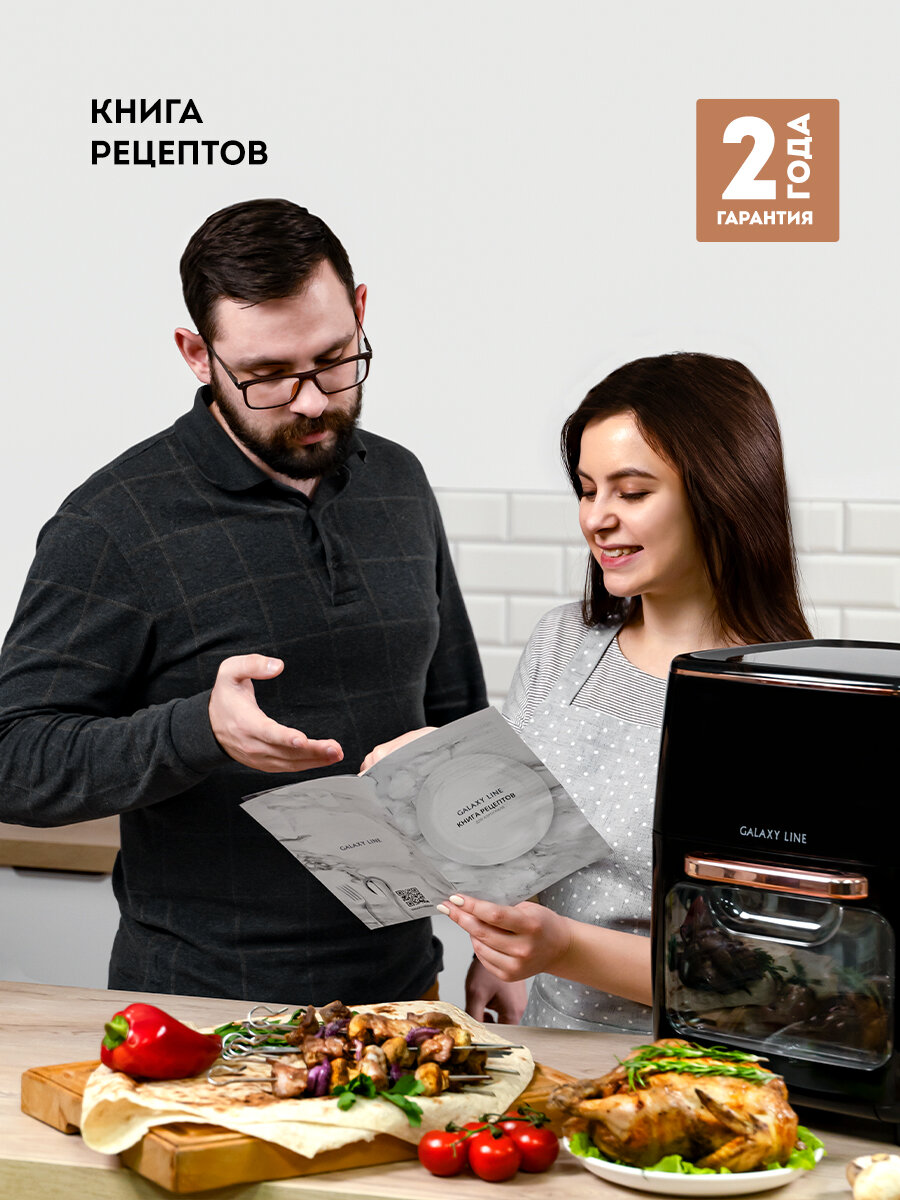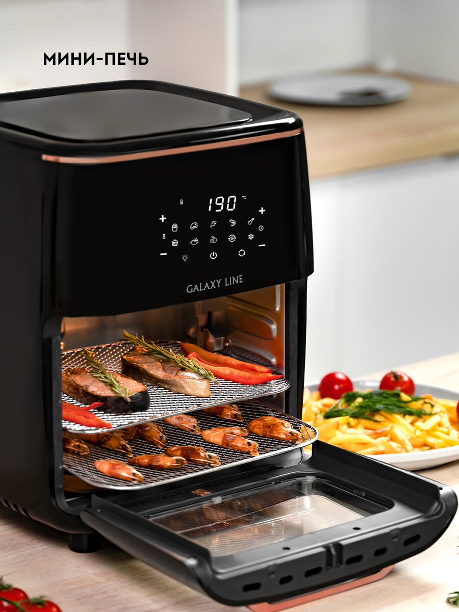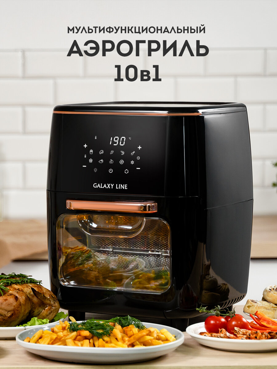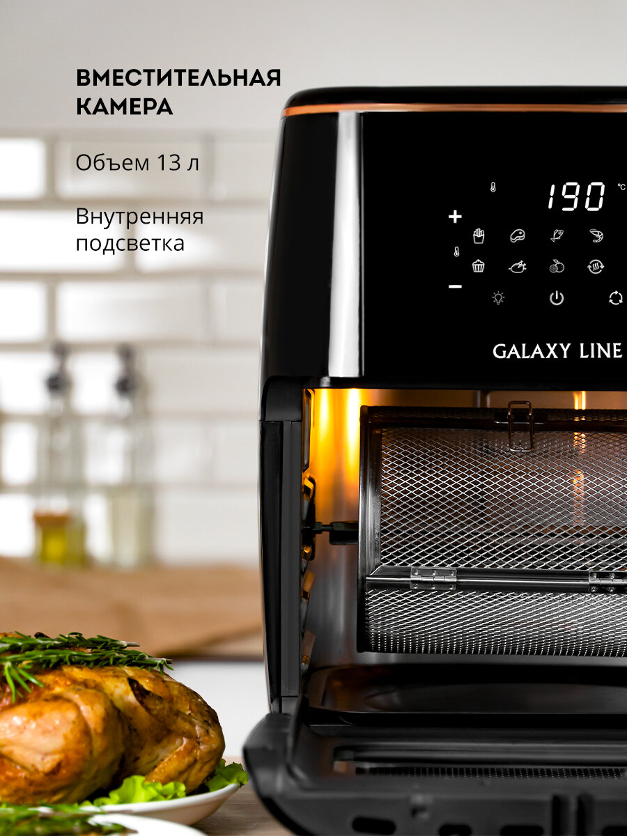 Мультифункциональный аэрогриль GALAXY LINE GL2523, мощность 2000Вт, объем чаши 13л, черный интересное: