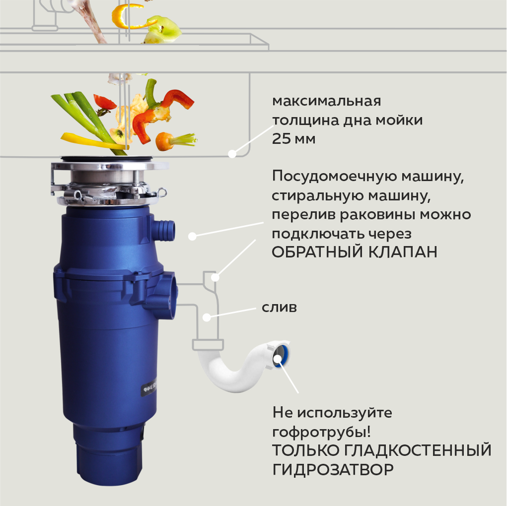 Измельчитель пищевых отходов WF F-52 Premium Compact Премиум, встраиваемый под раковину, 1.5 л, синий интересное: