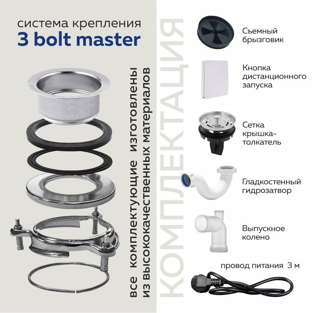 Измельчитель пищевых отходов WASTE FIGHTER 42 Premium Pro Max, кухонный встраиваемый под раковину, 1.25 л