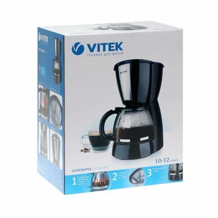Ниже Вы можете прочитать отзывы на VT-1503 Кофеварка Vitek (BK), ознакомится с подробными характеристиками, посмотреть интересные обзоры и фотографии на VT-1503 Кофеварка Vitek (BK).
