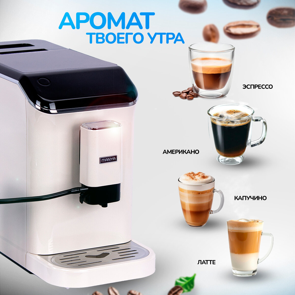Кофемашина автоматическая зерновая MANYA EAC20.01I, с капучинатором, для дома и офиса