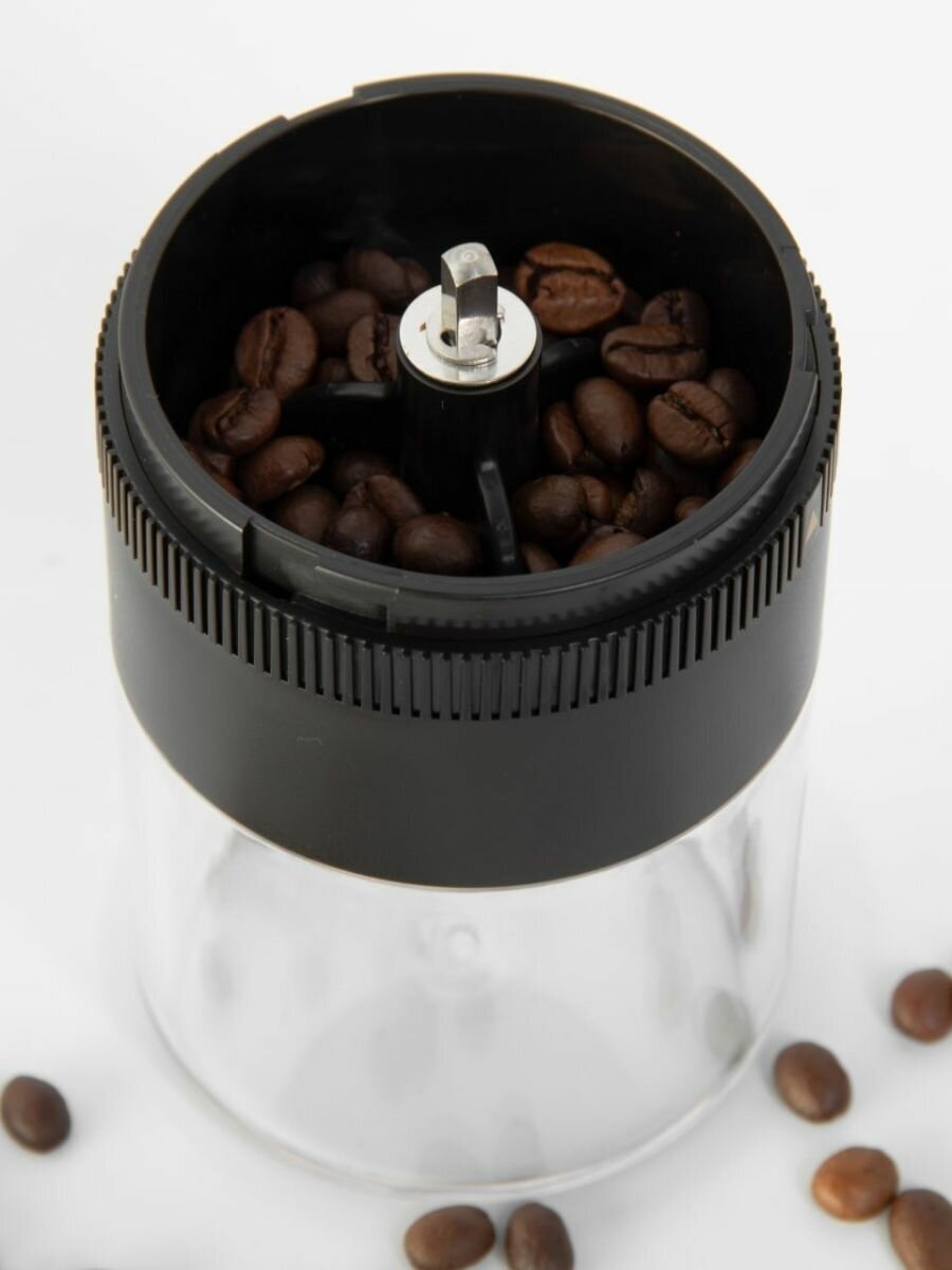 Кофемолка портативная, электрическая, жернова, регулировка помола, блокировка крышки, черная интересное: