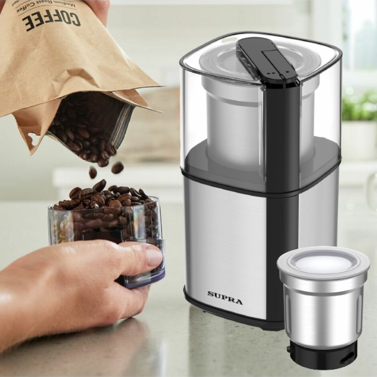 Кофемолка Supra CGS-320 300Вт сист. помол: ротац. нож вместим:80гр серебристый интересное: