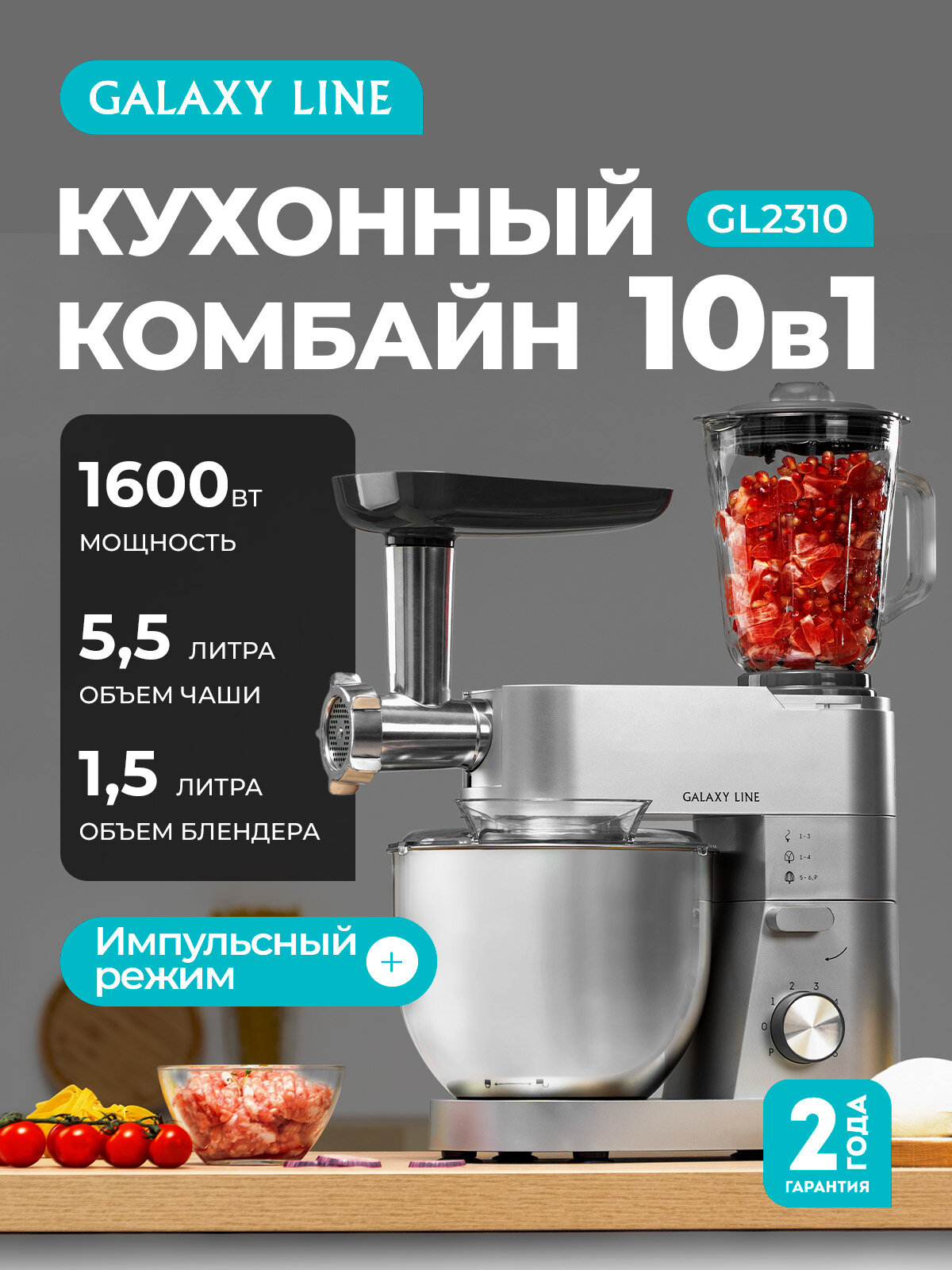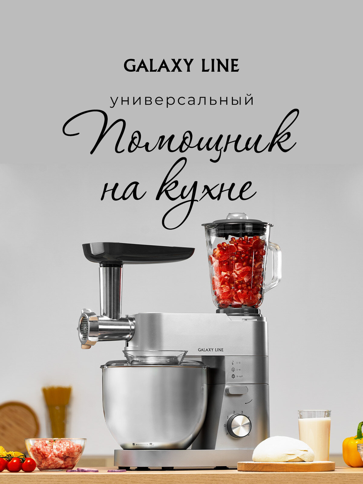 | Дополнительная информация | Кухонная машина GALAXY LINE – это практичное устройство "3 в 1" |