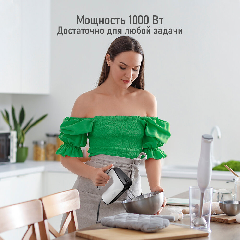 Миксер MARTA MT-MX1517A, ручной, 1000Вт, 5 скоростей, пластик, белый жемчуг интересное: