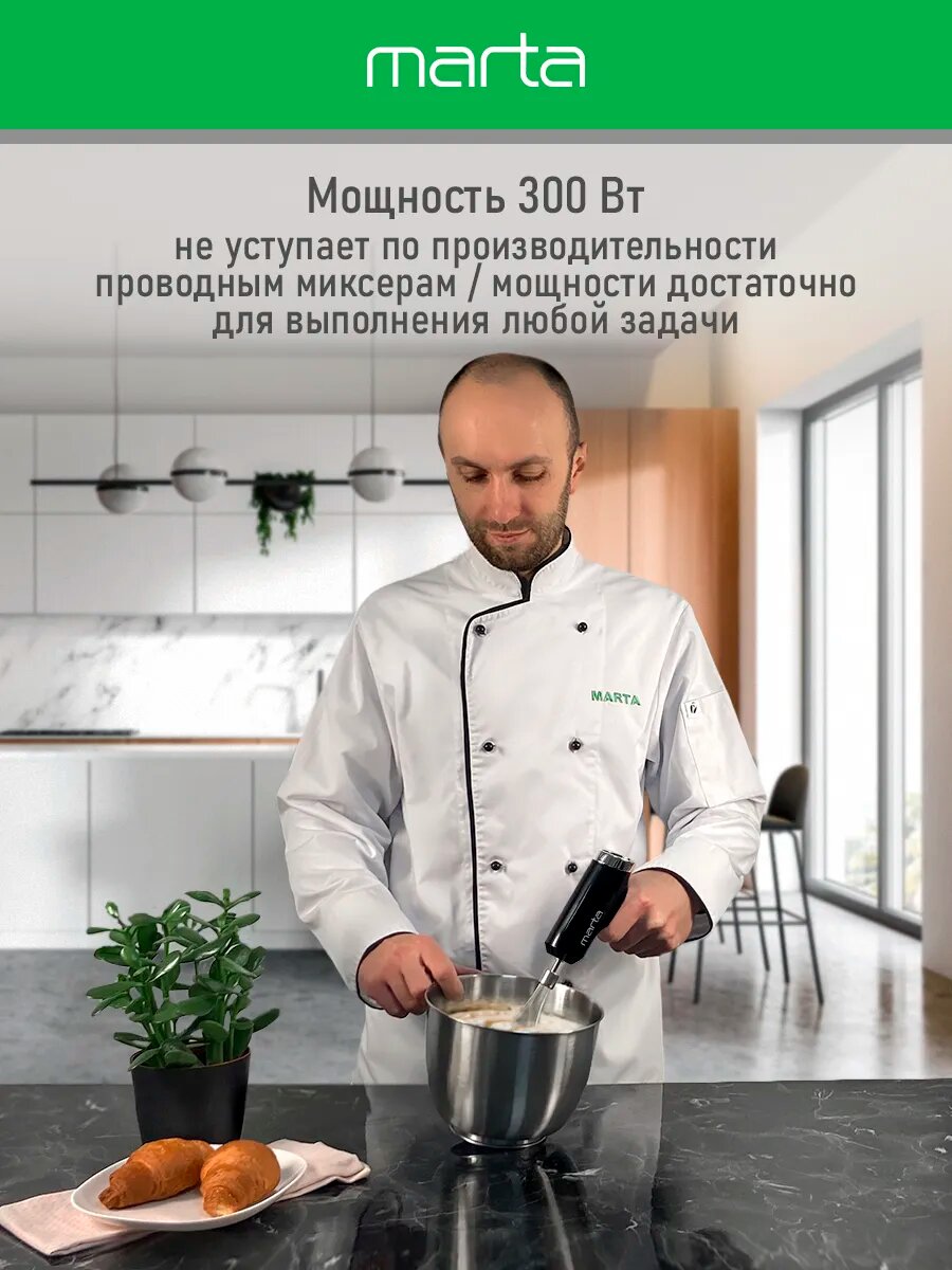 Миксер MARTA MT-MX1523A, мощность 300Вт, пластик/сталь, 3 скорости, ЖК-дисплей интересное: