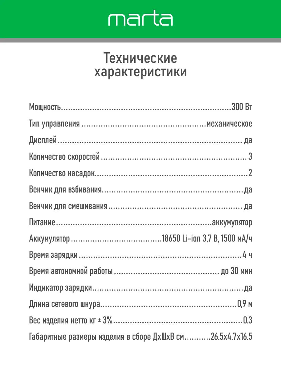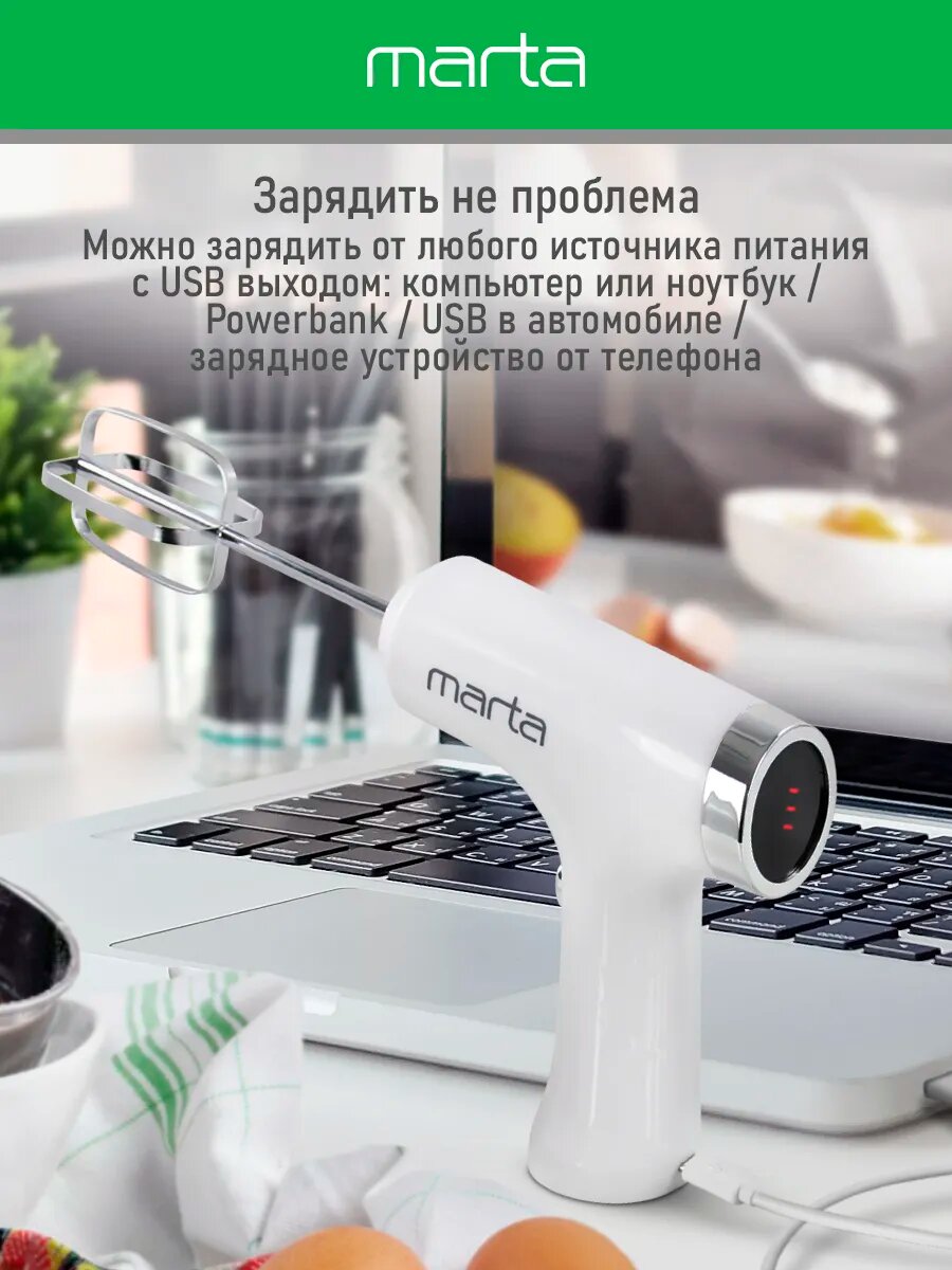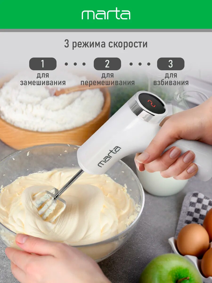 Миксер ручной MARTA MT-MX1523A белый мрамор интересное: