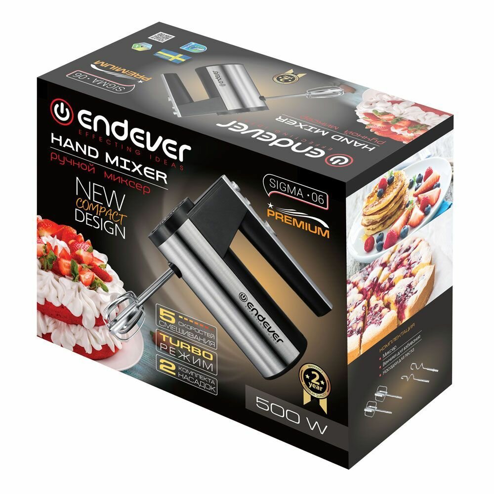 Ручной миксер ENDEVER SIGMA-06 / 500 Вт / 5 скоростей / 2 комплекта насадок