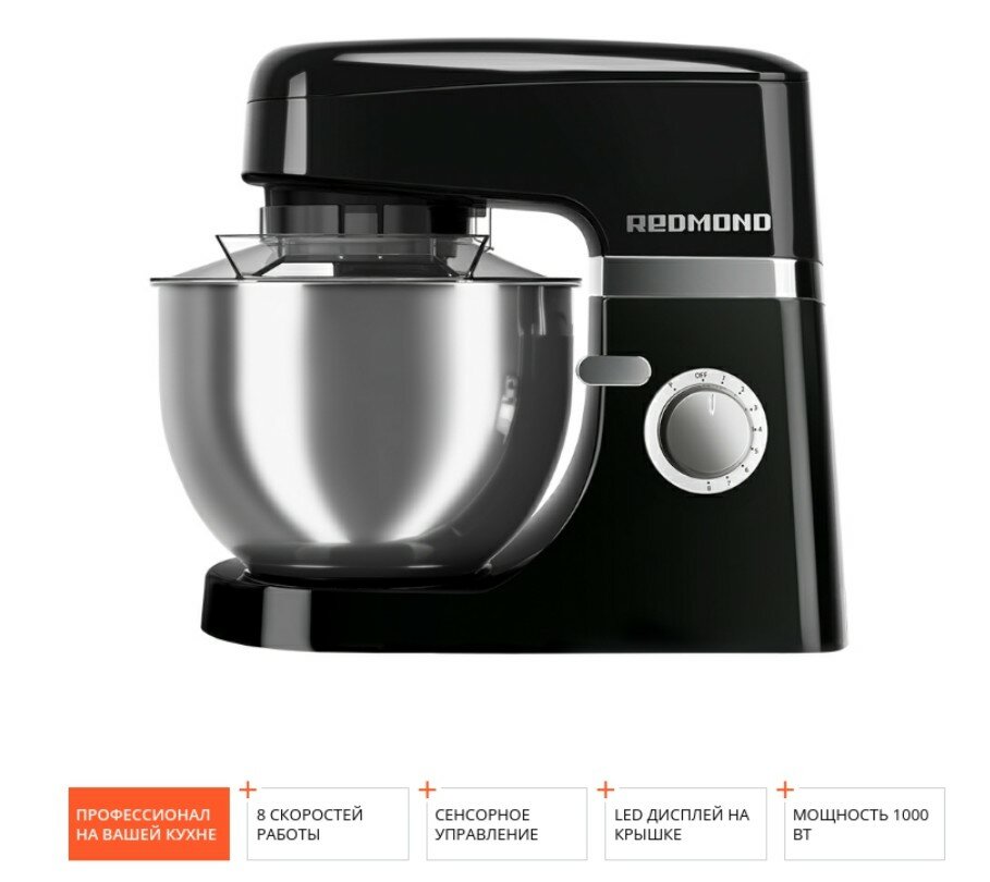 Миксер Redmond FM601 черный [1000 Вт, планетарный, скоростей - 8, корпус - пластик, насадок - 3 шт] интересное: