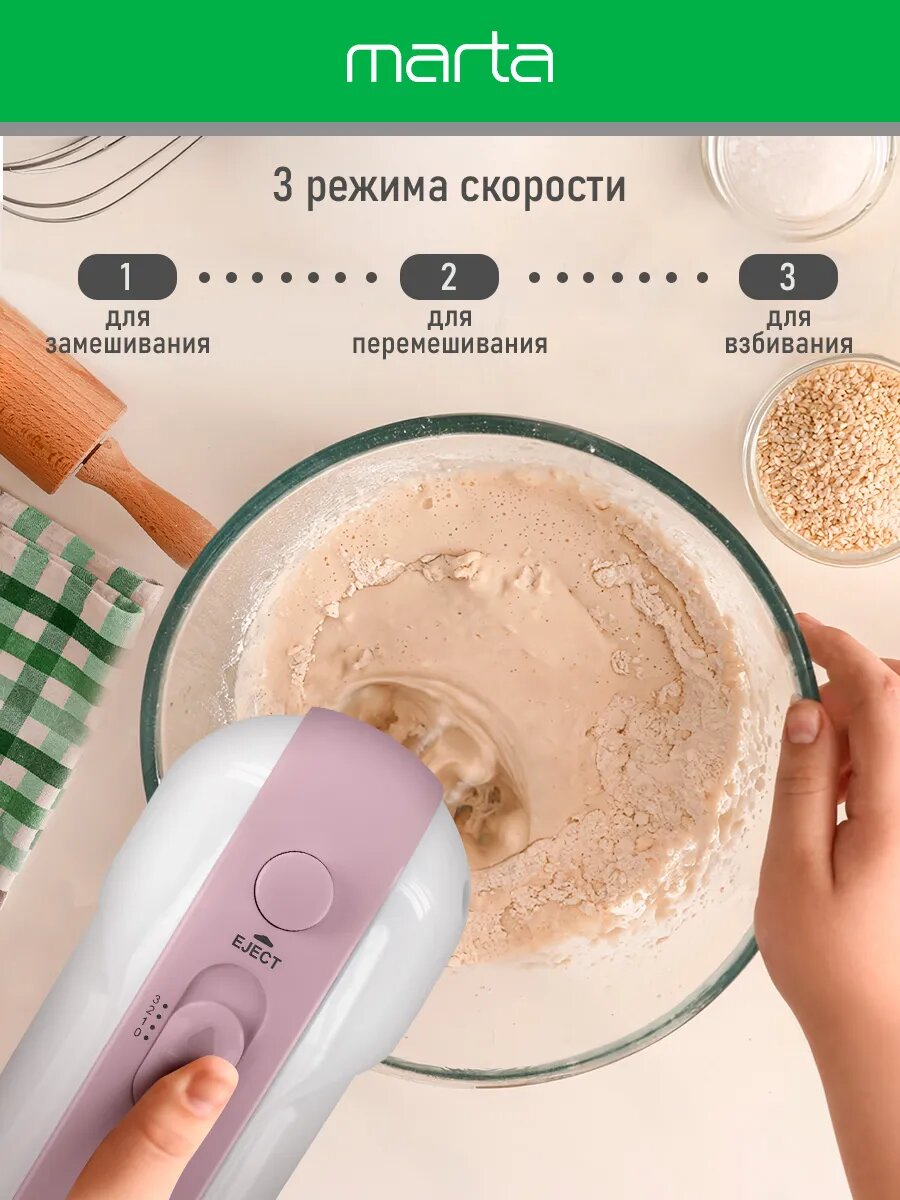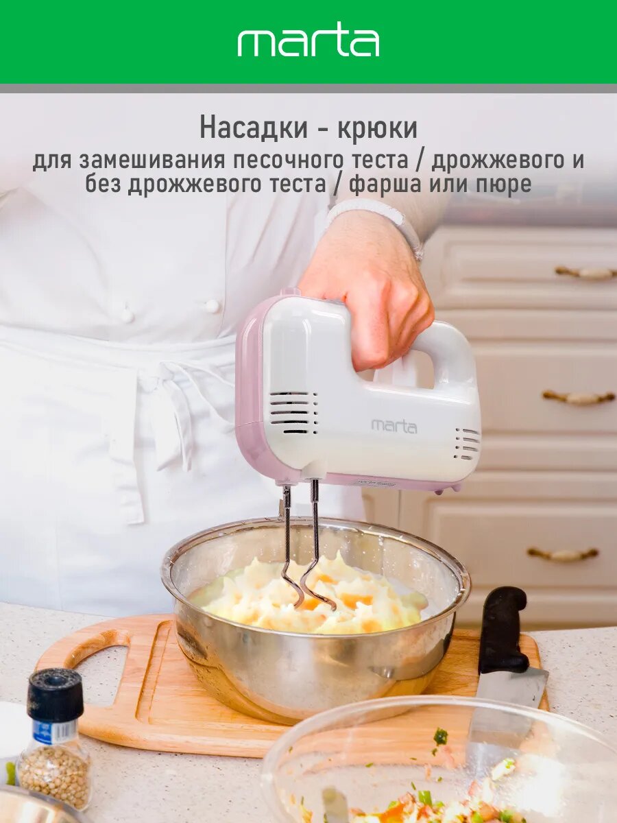 СохранитьМиксер ручной MARTA MT-MX1525A розовый опал интересное: