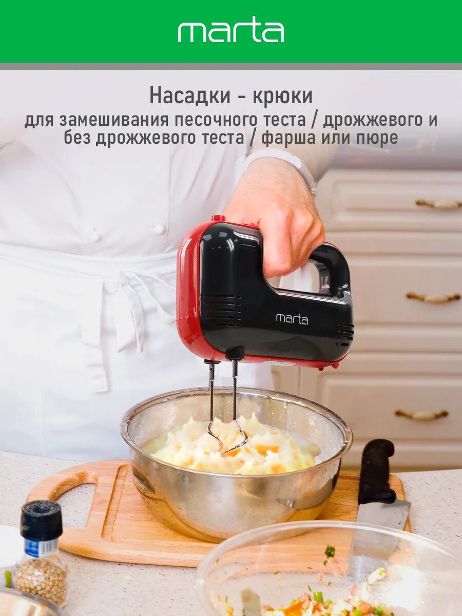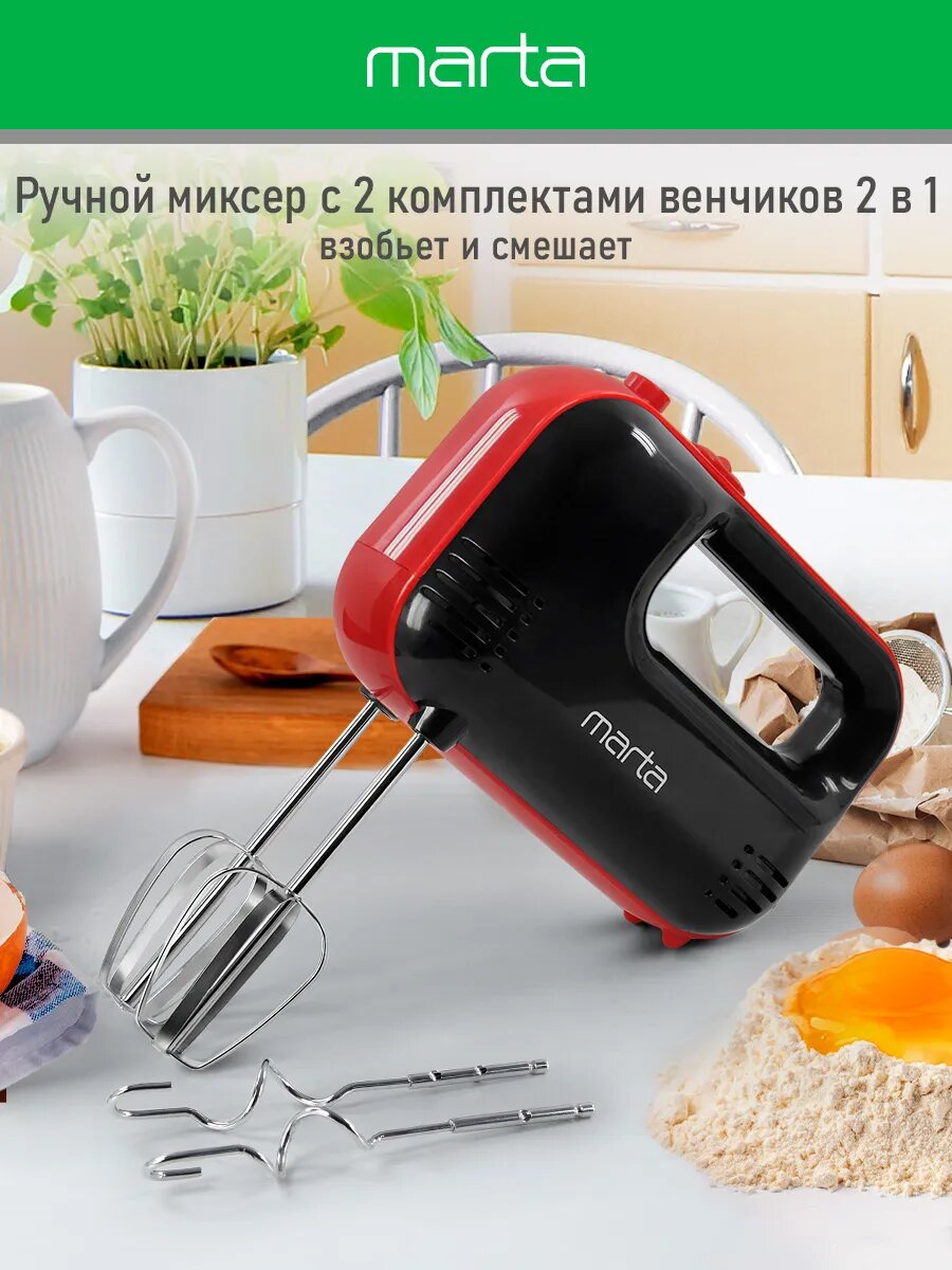Миксер MARTA MT-MX1516A, ручной, 5 скоростей, красный, 800 Ватт