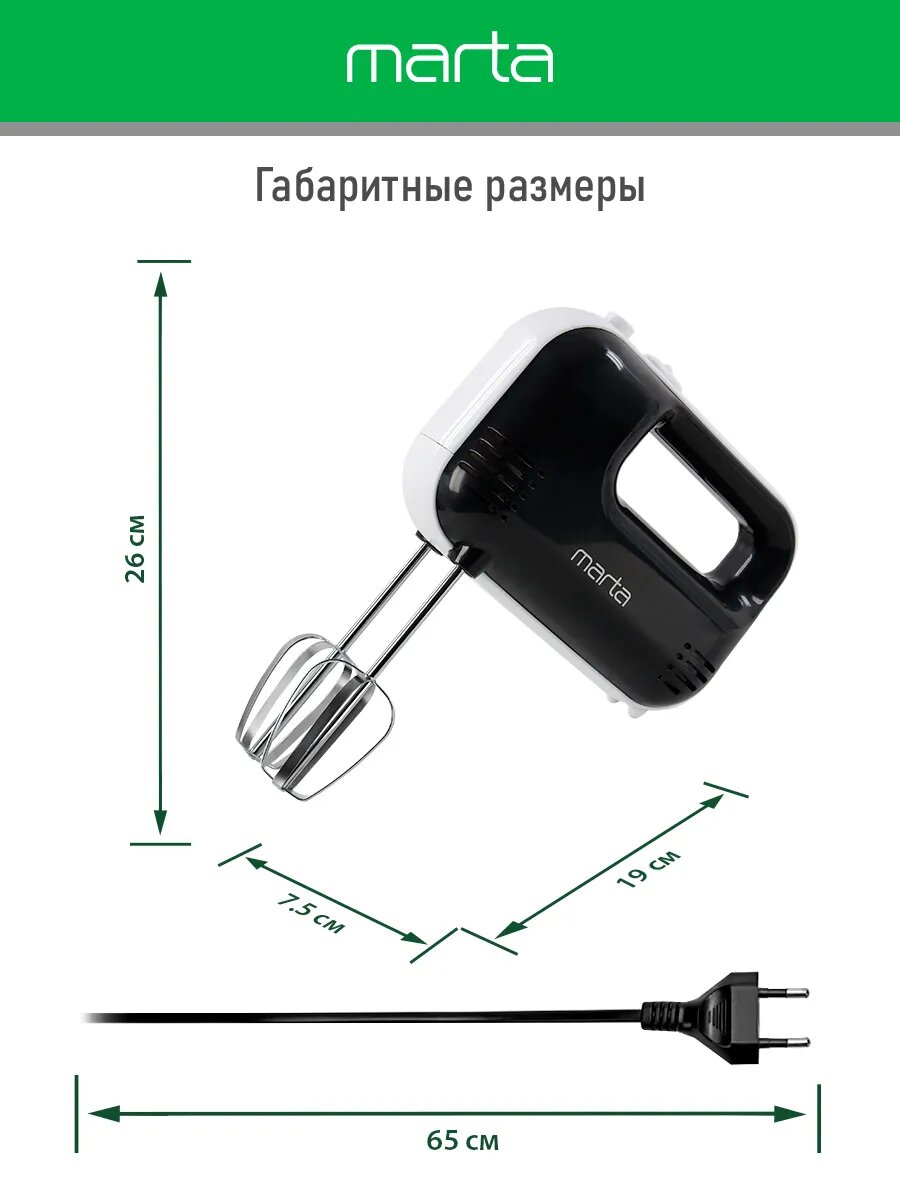 Миксер ручной MARTA MT-MX1526A черный жемчуг