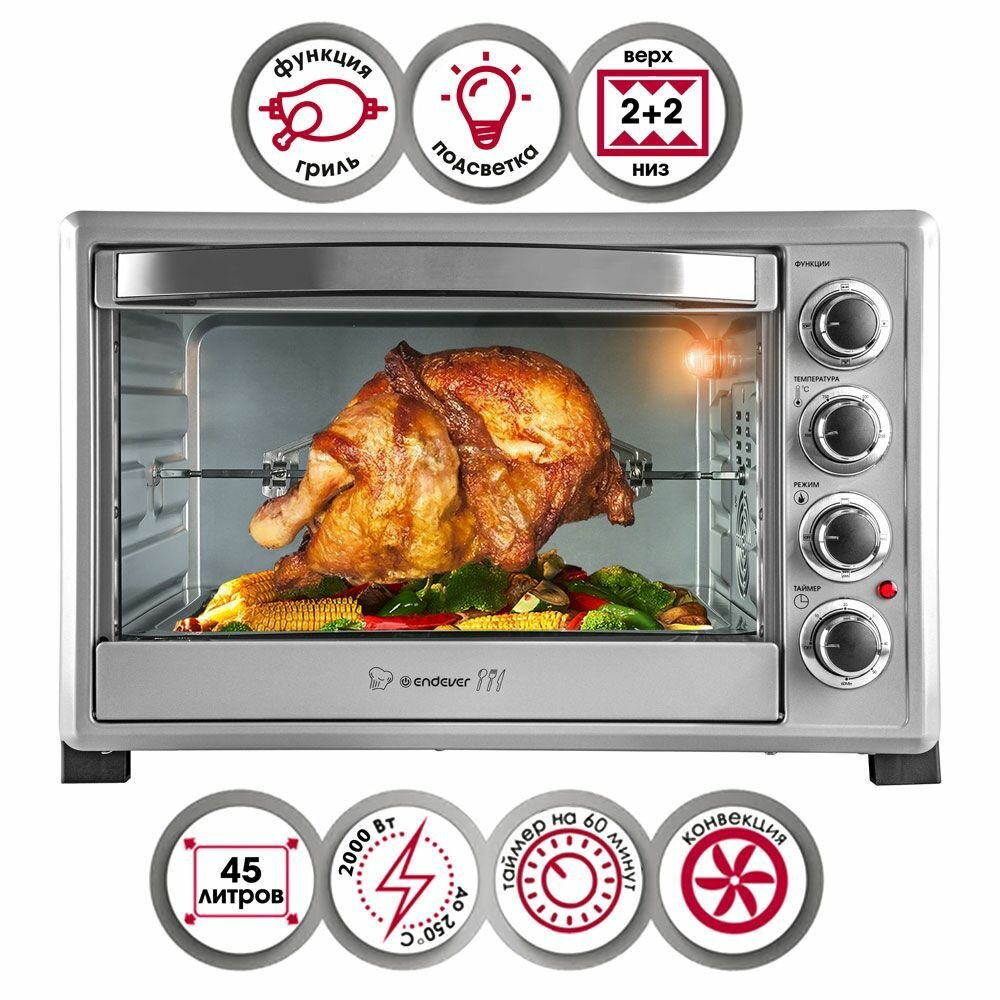Мини печь электрическая ENDEVER Danko-4047, 2000 Вт, духовка электрическая настольная 45 л, конвенция, 100-250 градусов интересное:
